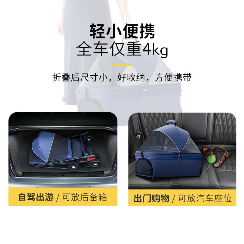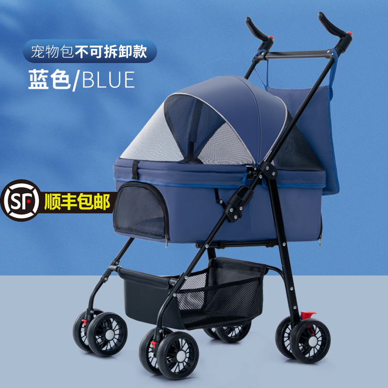 宠哈佩特宠物推车狗狗猫咪泰迪婴手推车外出小型宠物狗车轻便可分离笼折叠 W01蓝色(不可分离提篮