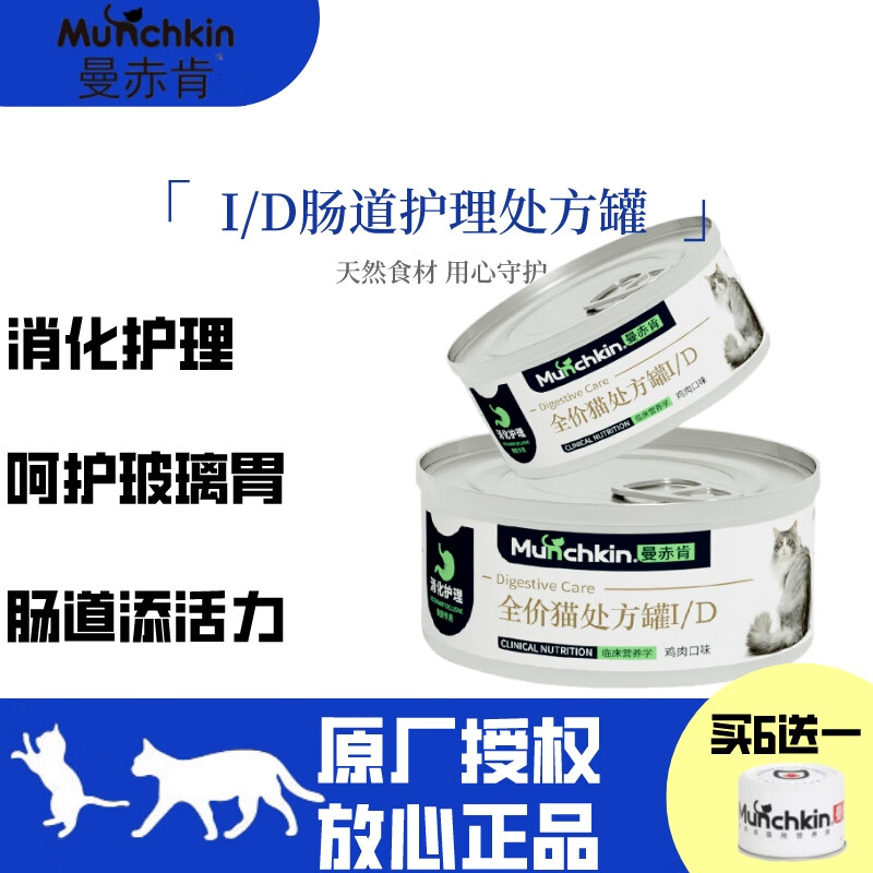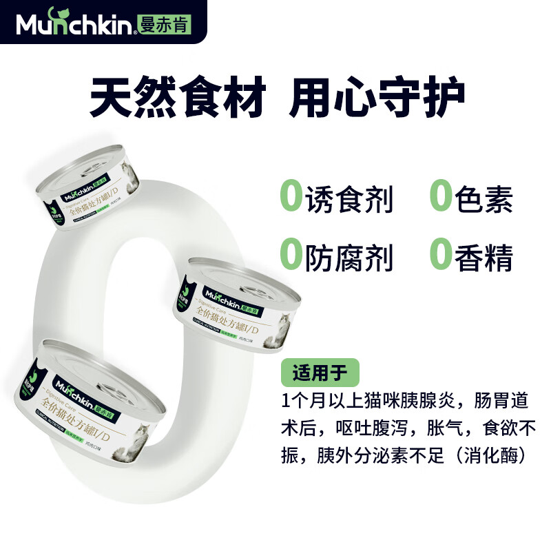 曼赤肯(Munchkin)猫罐头AD康复脸谱狗狗猫咪手术后产后泌尿肾脏皮肤绝育康复ID消化 ID消化罐猫专用呕吐 腹泻 厌食 85g*3罐【尝鲜装】