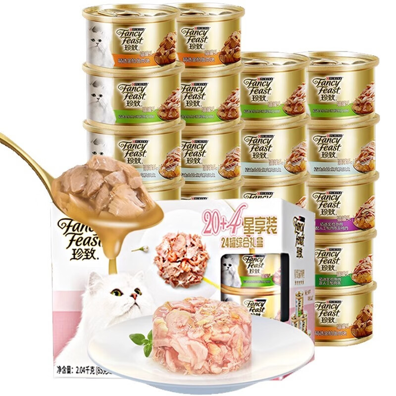 珍致(正常发货)进口白肉猫罐头24罐整箱金枪鱼猫咪零食成猫营养孕猫 六口味混合85g*24罐