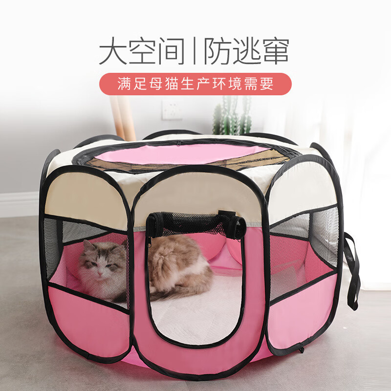 笼趣猫产房猫咪产房生育窝产箱封闭式孕猫狗生产包八角帐篷猫窝宠物窝 米色 粉色 S:72*72*45
