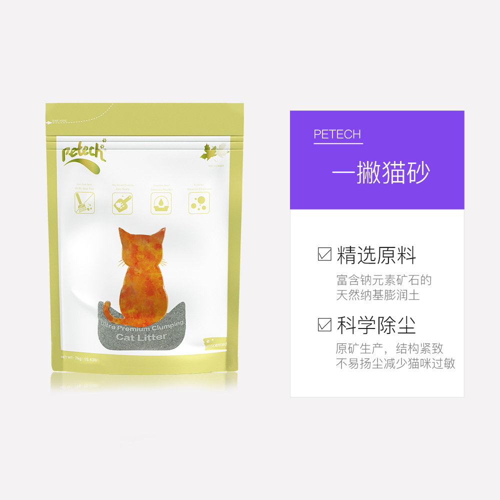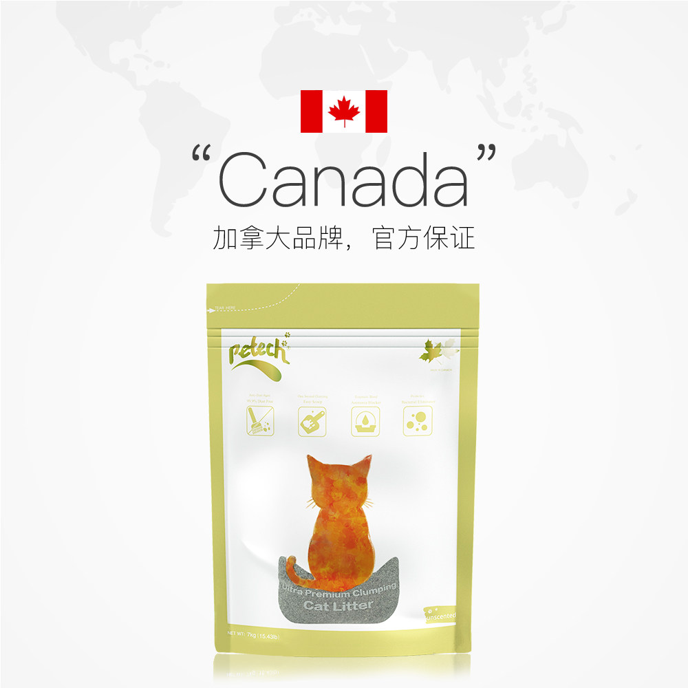 【自营】加拿大一撇/Petech膨润土猫砂结团除臭无尘无香型7KG