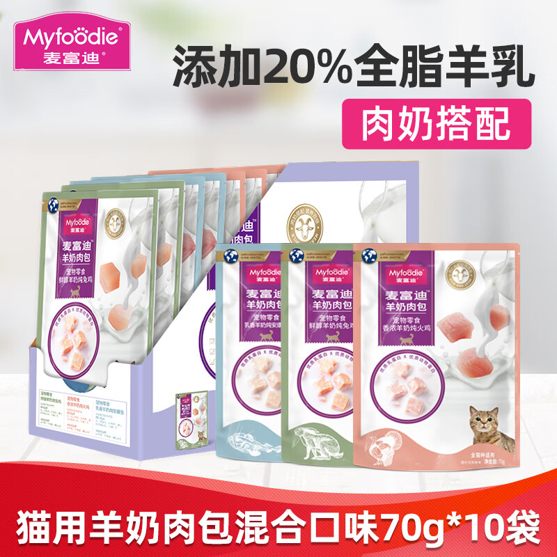 麦富迪猫湿粮 猫零食羊奶肉包 成猫幼猫肉粒包软包猫罐头湿粮 混合口味70g*10袋