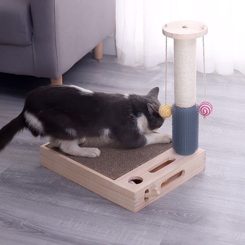 潘友 猫玩具逗猫棒猫转盘猫抓柱猫薄荷纯实木玩具 蹭痒5合1猫抓板