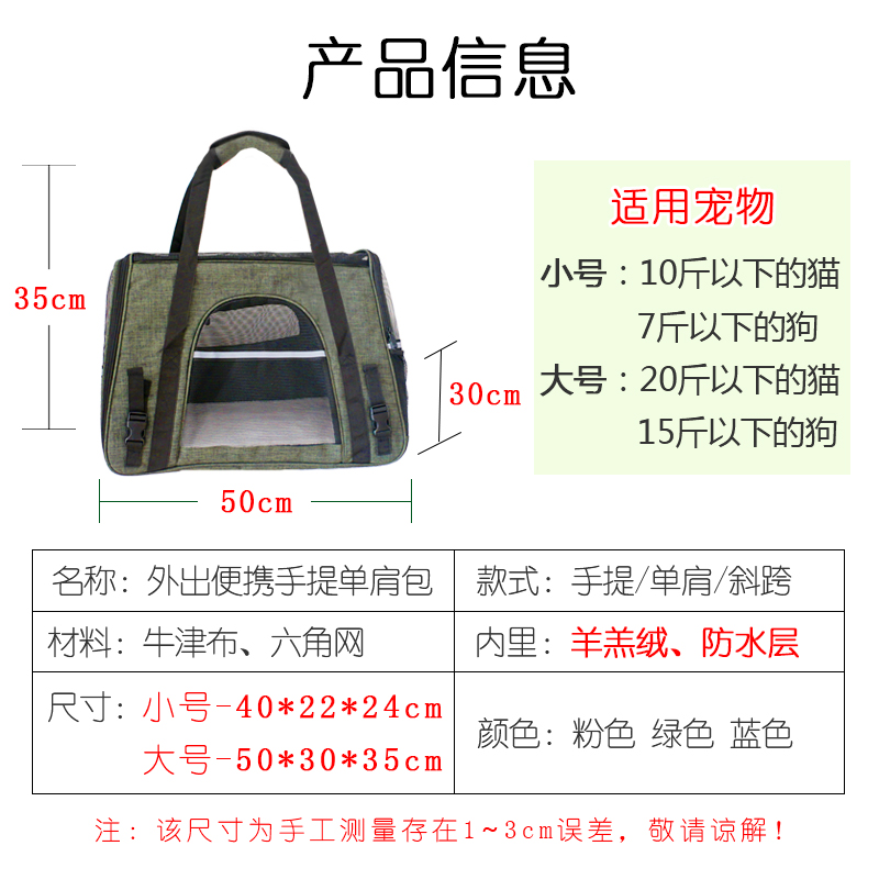 贝尼豆 猫包外出 大号猫背包宠物包猫笼便携手提车载猫狗包中小犬猫咪通用 猫包绿色小号垫板10斤以下宠物用