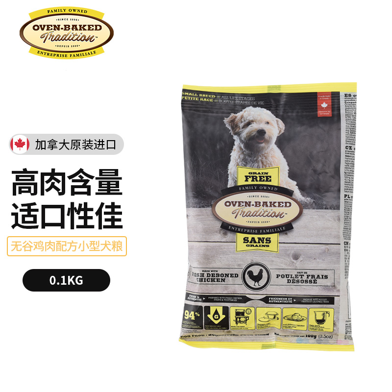 OVEN-BAKED TRADITION欧恩焙加拿大原装进口无谷小型犬低温烘焙配方全犬粮全阶段狗粮 无谷鸡肉味小颗粒100g