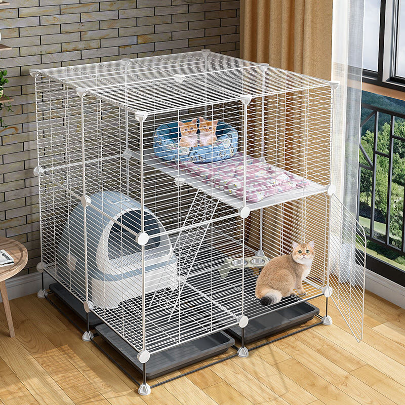 y猫笼子家用双层三层猫别墅豪华室内猫窝超大猫笼猫咪用品笼子地狼 【加深款】2列2层1排双开门 升级款(常规款 猫抓柱)