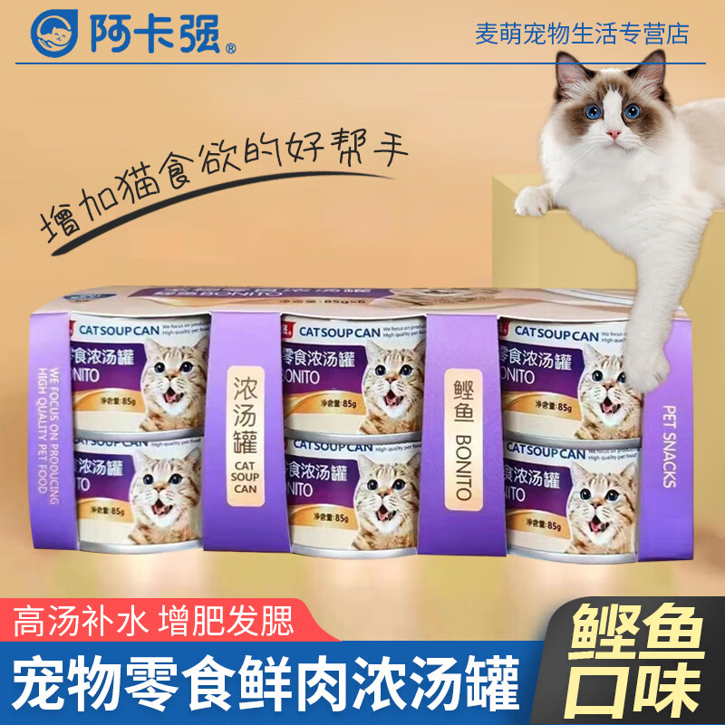 阿卡强猫罐头浓汤罐宠物猫零食补水成猫全阶段主食湿粮白肉营养增肥发腮 鲣鱼口味95g*6罐