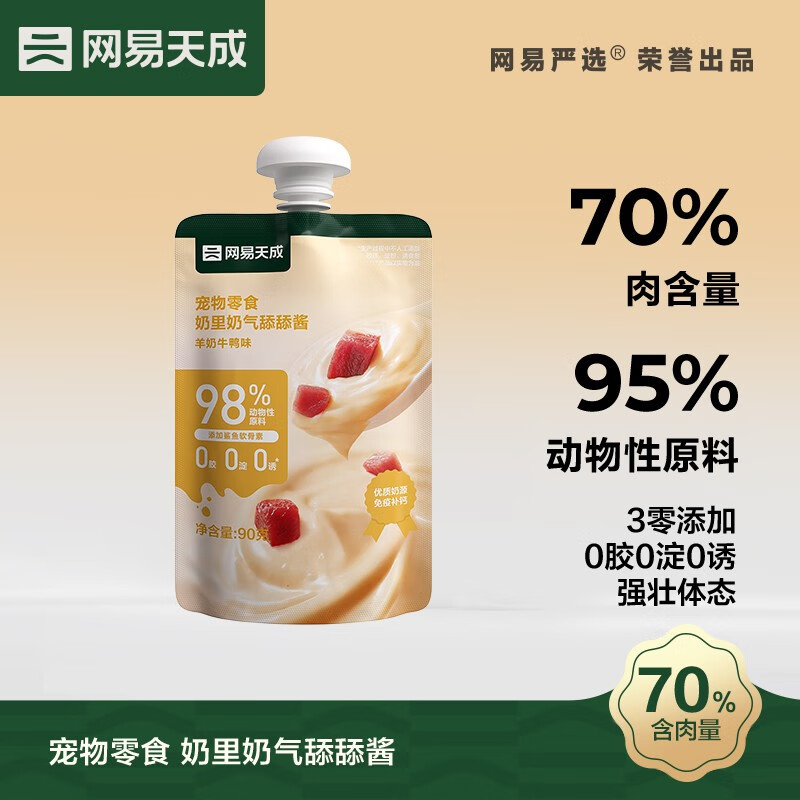 网易天成奶里奶气乳酪酱 成猫成全营养零食肉泥 猫狗通用湿粮软罐头 羊奶牛鸭味90g