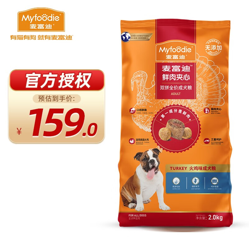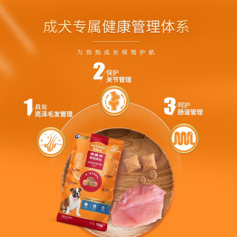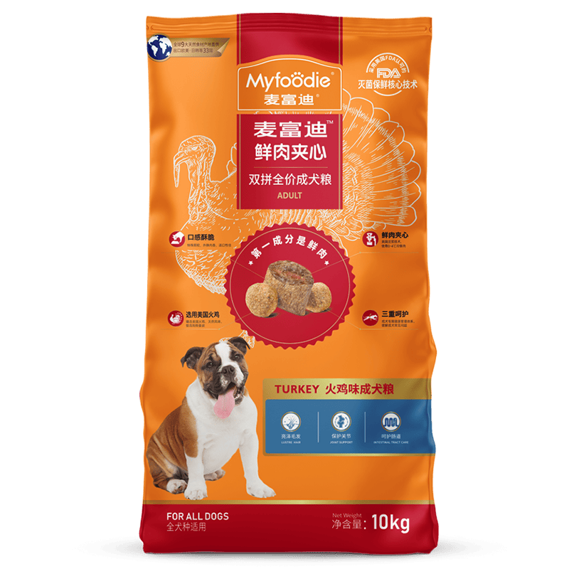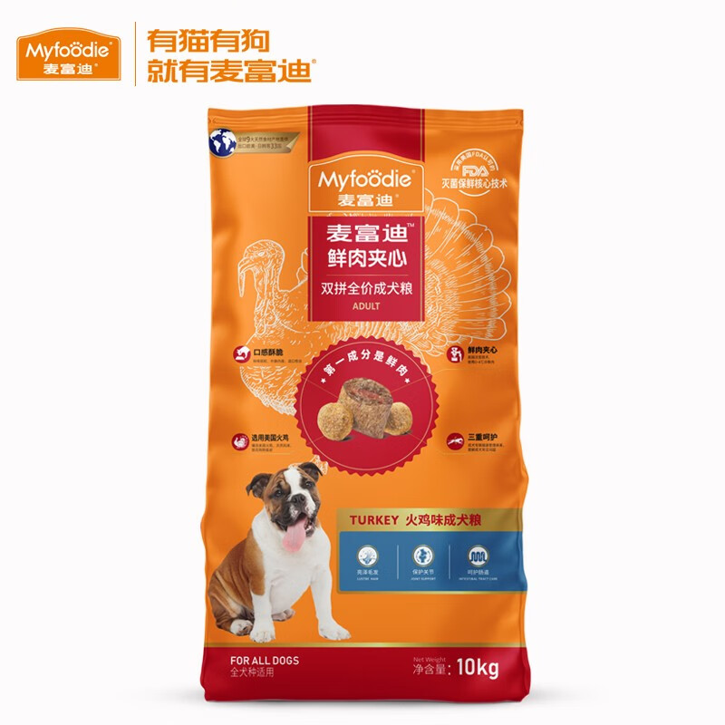 麦富迪 狗粮 哈士奇泰迪通用牛肉双拼鲜肉夹心狗粮 美国火鸡夹心成犬粮10kg