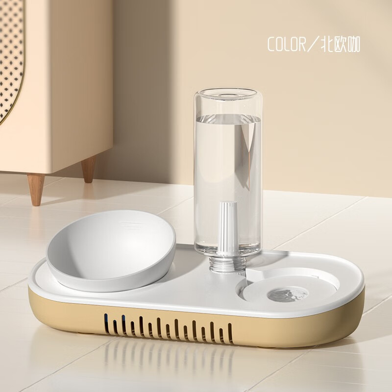 憨憨宠猫碗狗碗猫咪饮水器猫食盆猫饭盆防湿嘴防滑喂食器喝水器宠物用品 北欧咖