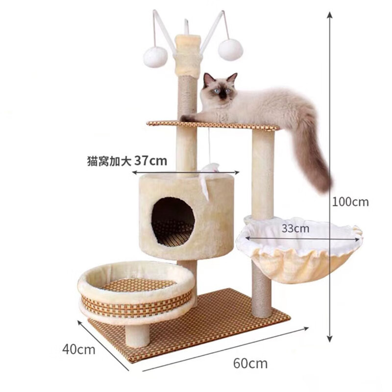 猫窝四季通用猫爬架猫架子猫窝猫抓板上下铺猫树柱一体四季通用耐磨猫跳台猫屋 四季藤席逗猫台豪华款款 【适合14斤内】