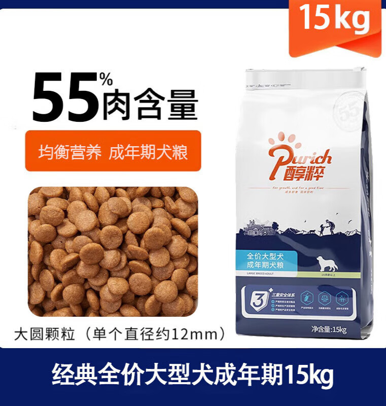 醇粹(Purich)狗粮成犬经典通用大型犬天然金标15KG纯粹犬粮金毛萨摩耶 全价大 15kg