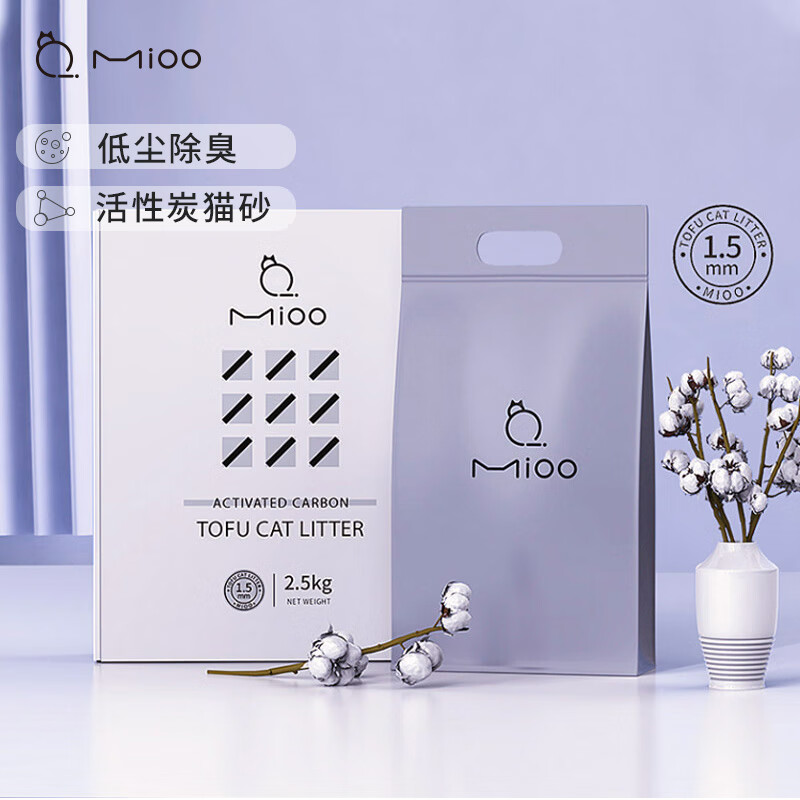 mioo猫砂 活性炭豆腐猫砂升级1.5mm小颗粒猫砂豆腐猫砂铲猫砂垫猫砂盆猫沙用量省瞬间吸水结团结实 2.5kg