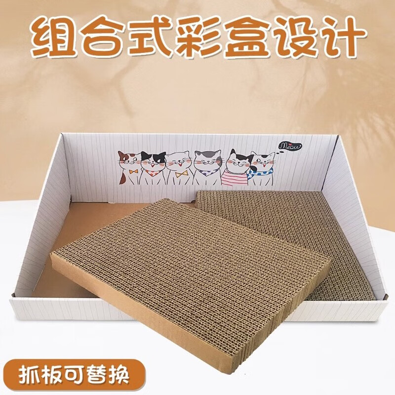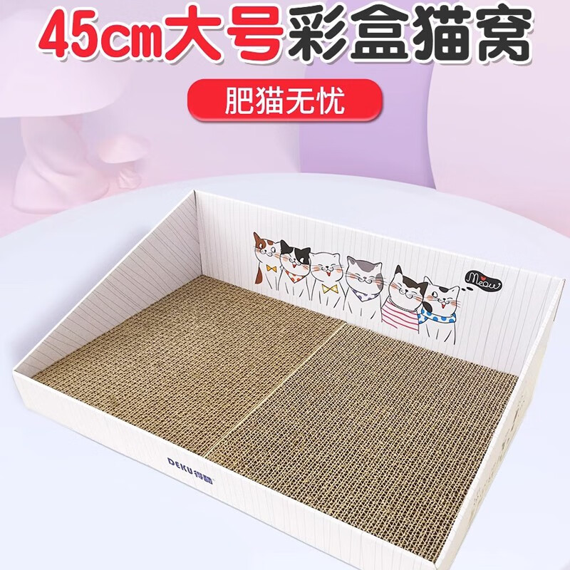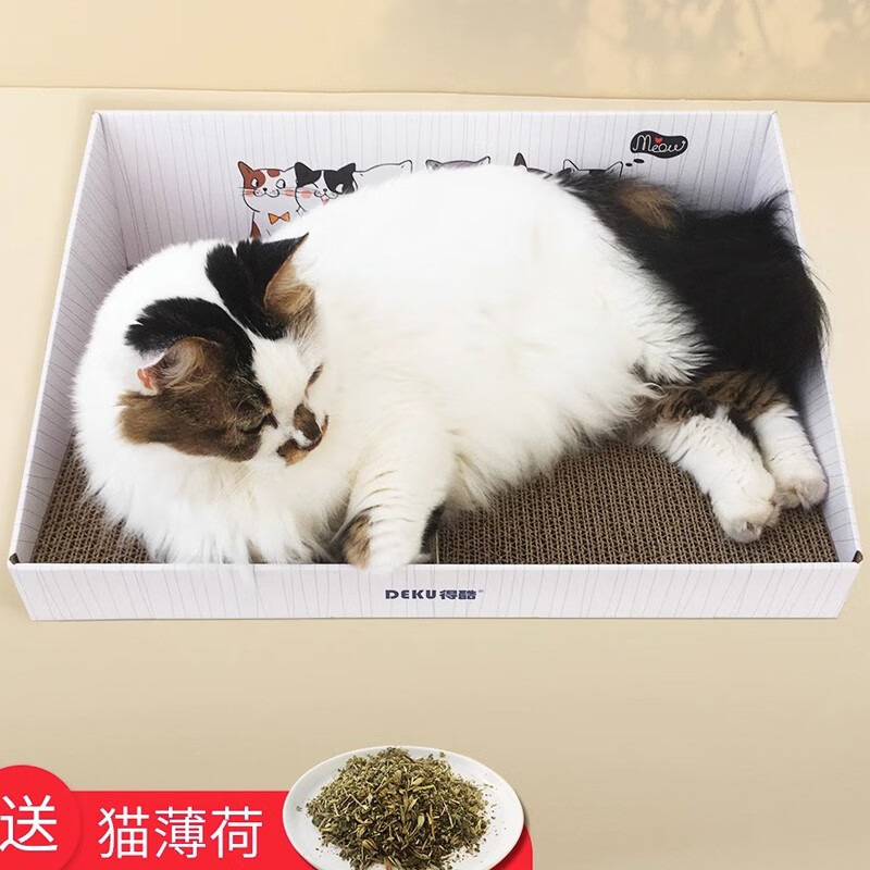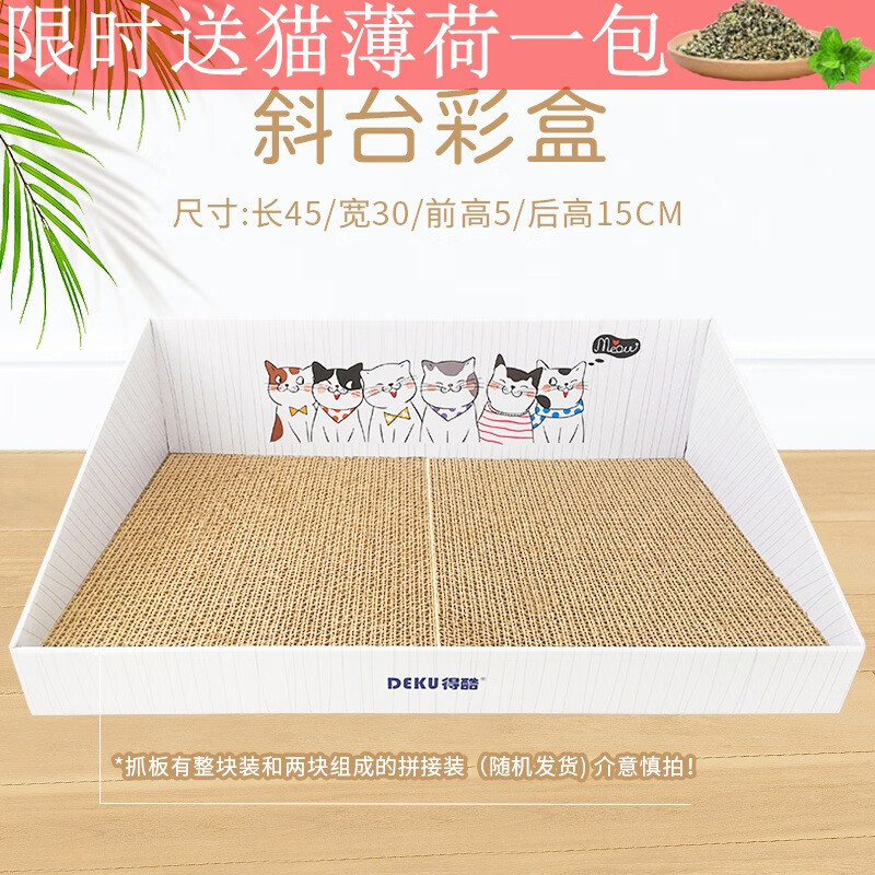 得酷【赠猫薄荷】彩盒猫抓板窝 猫窝猫爪板磨爪器 耐磨不掉屑 猫咪玩具用品 大号 白色斜台彩盒