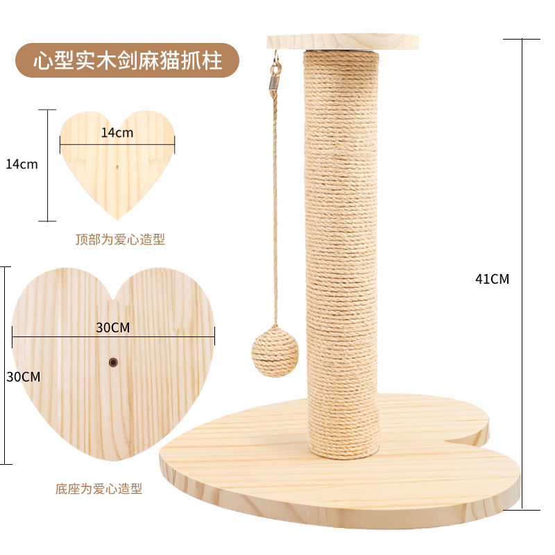 猫抓板玩具猫爬架剑麻瓦楞纸窝猫咪用品耐磨磨爪器逗猫立式猫抓柱 大号实木猫抓柱-【心型】