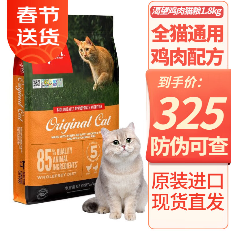 【旗舰店】orijen美国进口通用型天然全阶段营养原味猫粮5.4kg