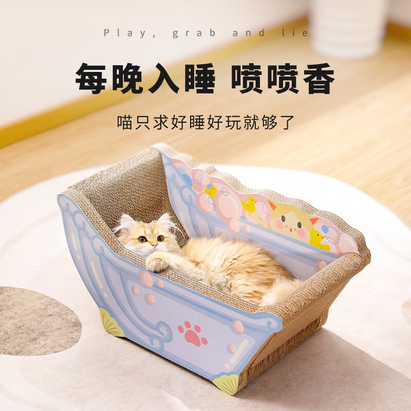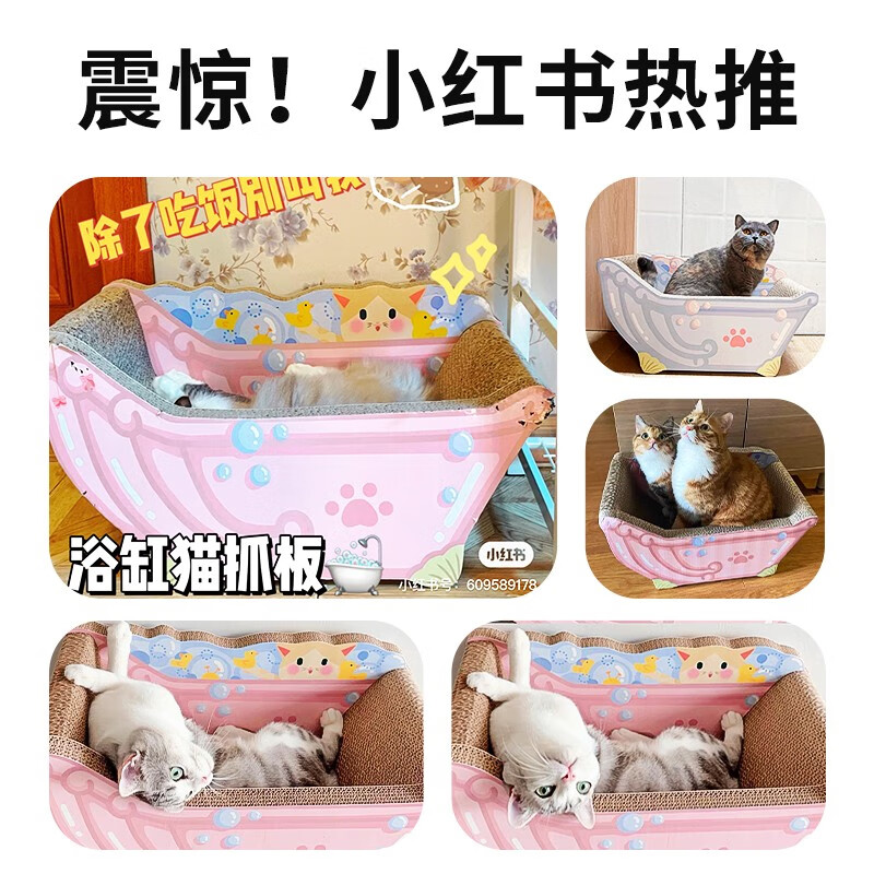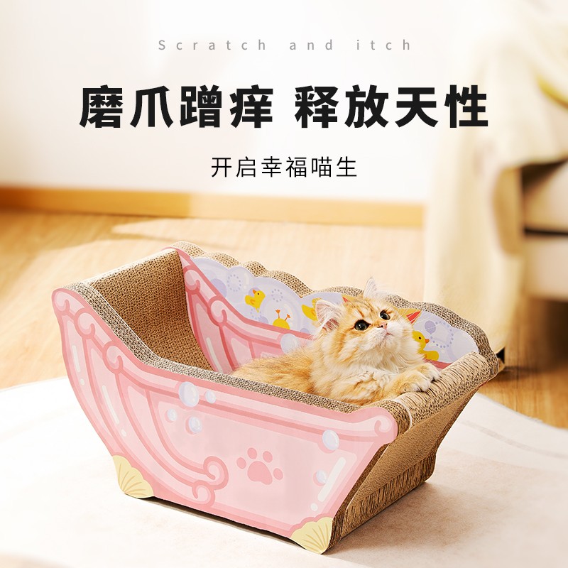 守爱 浴缸猫抓板窝瓦楞纸耐用不掉屑猫爪板耐磨立式磨爪器大号猫咪玩具 粉色大号【18斤以内适用】