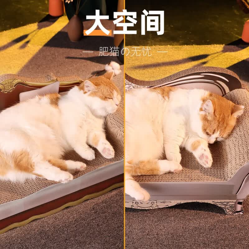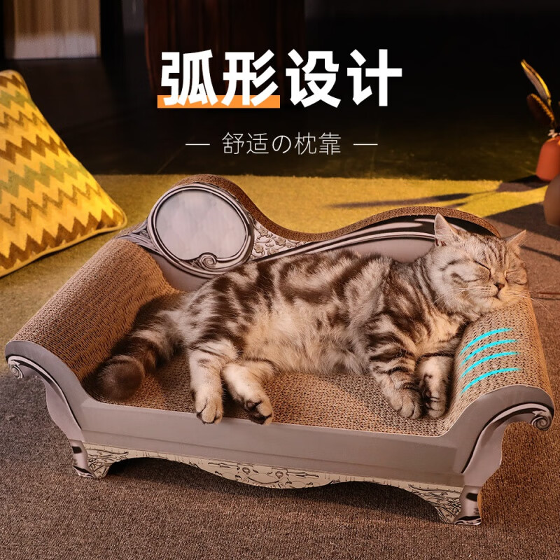 hoopet猫沙发猫抓板猫窝一体瓦楞纸猫爪板耐用不掉屑大号磨爪贵妃椅猫床 古典贵妃榻大号