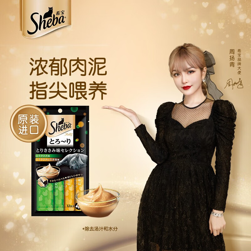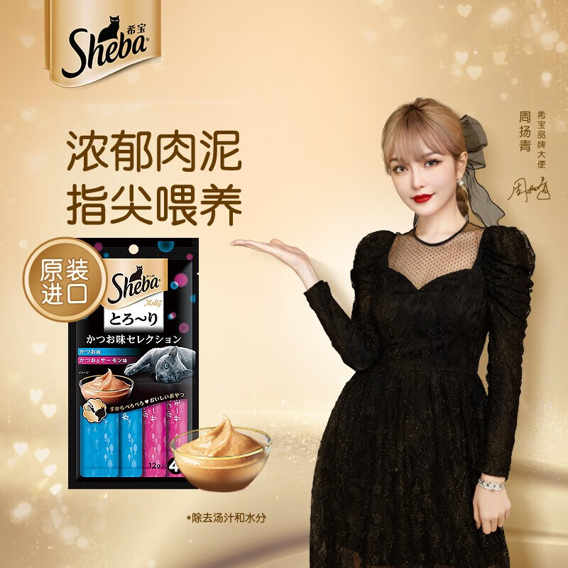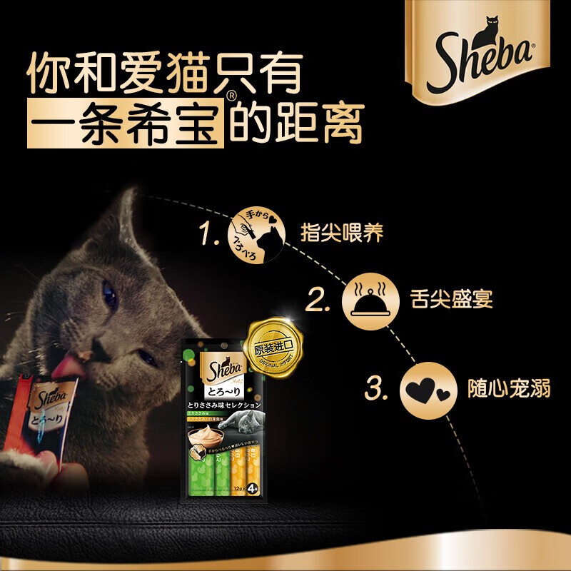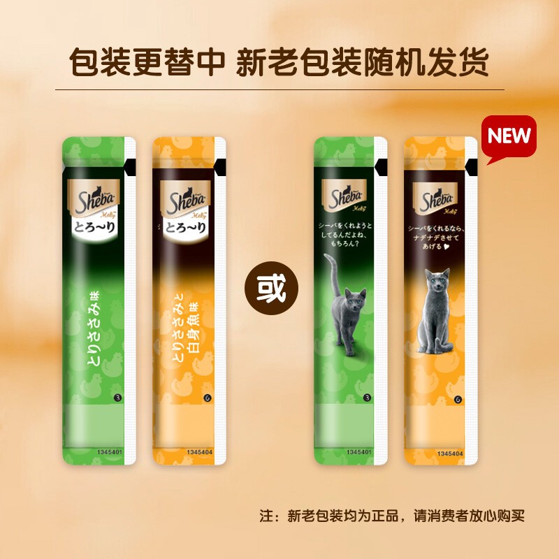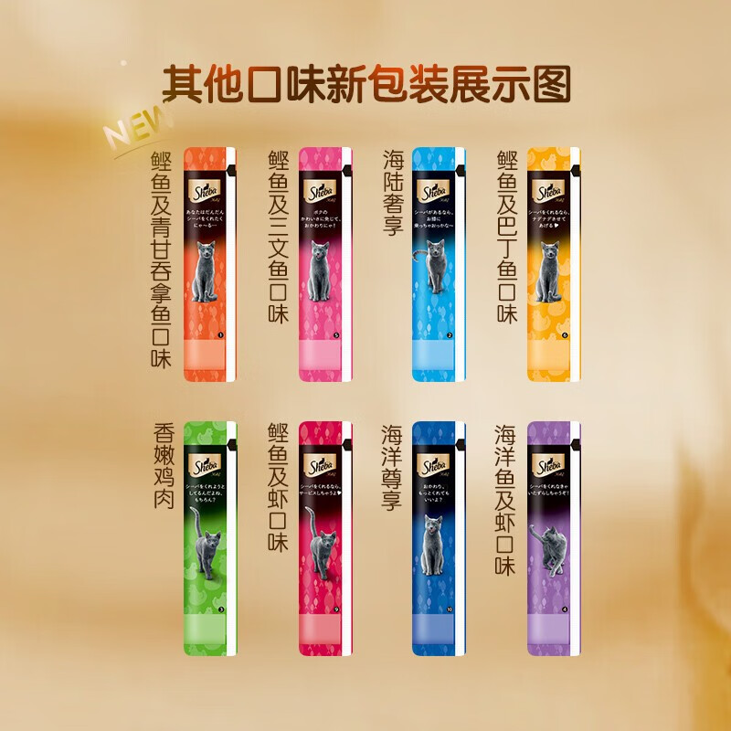 希宝(Sheba)进口猫条液体零食猫咪软罐头湿粮宠物成年猫老年猫流质营养补充魔兜主食罐 海陆奢享鲣鱼三文鱼12g*4条