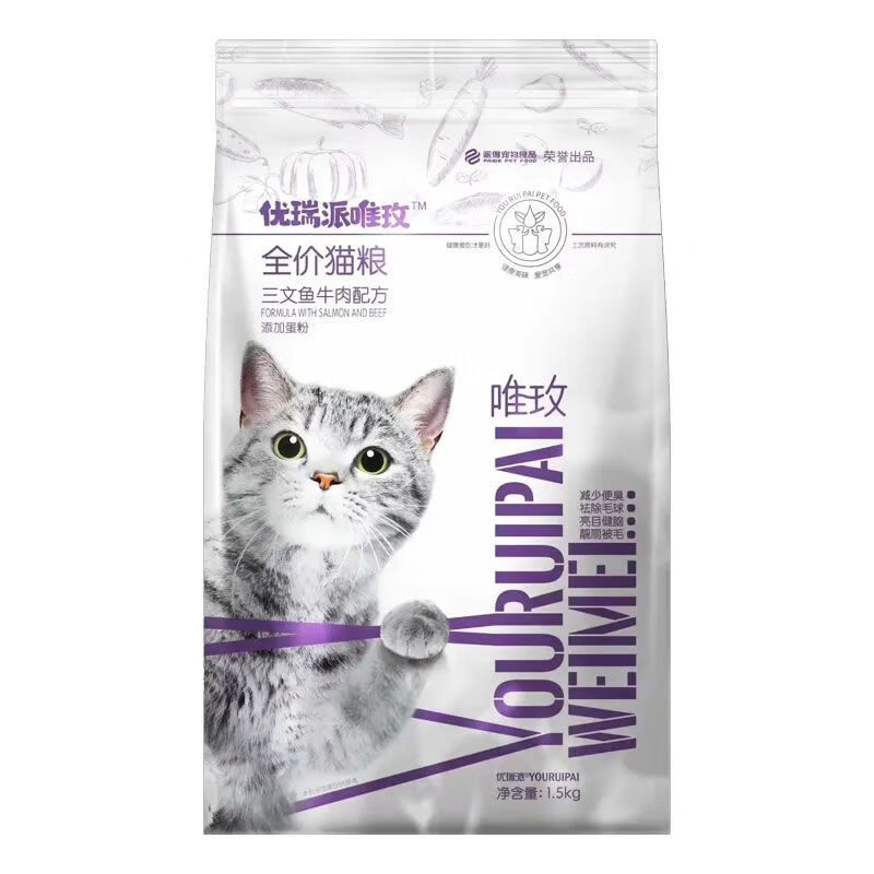 优瑞派猫粮500g*5包成猫幼猫猫粮三文鱼味蓝猫1.5kg猫主粮 【鸭肉三文鱼】1.5kg*1包
