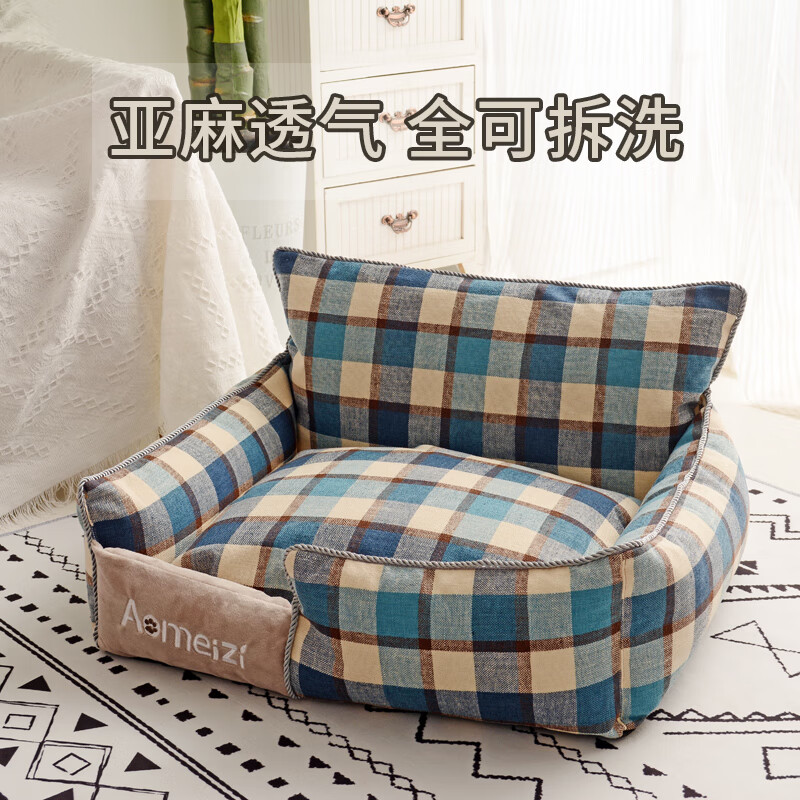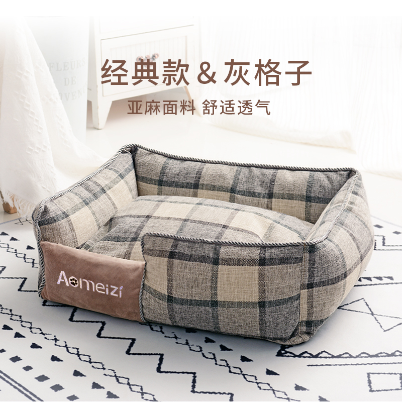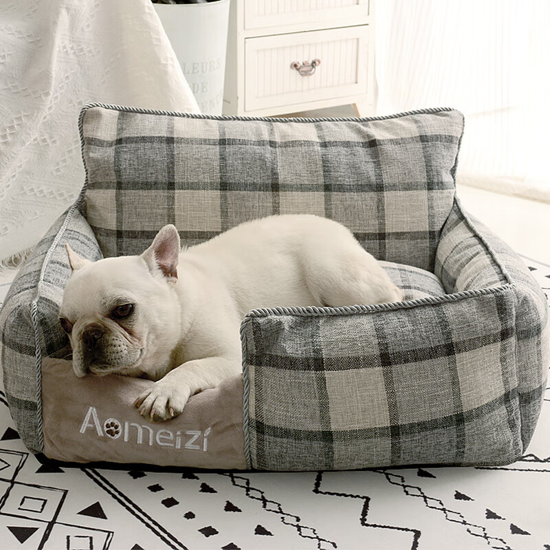 皆百福 猫窝四季通用狗窝可拆洗款四季通用小型犬法斗比熊夏天宠物床狗床全棉猫床猫窝 经典款灰格子 L-大型