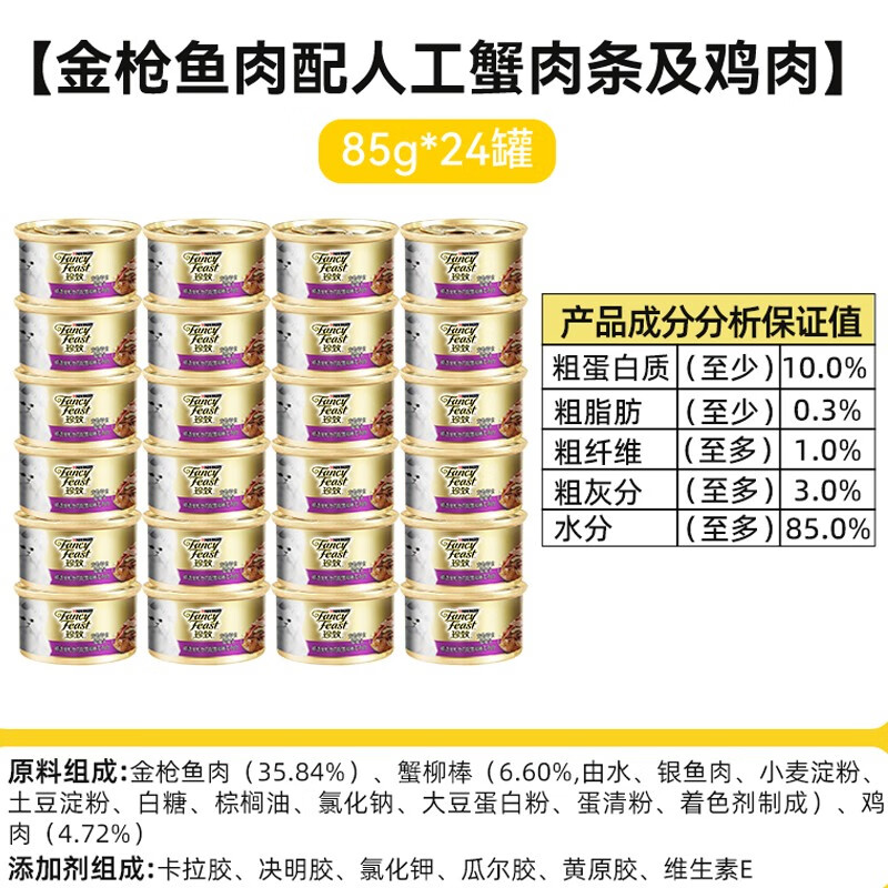 珍致进口白肉猫罐头24罐整箱金枪鱼猫咪零食成猫营养孕猫零食湿粮 金枪鱼 蟹肉条 鸡肉85g*24罐