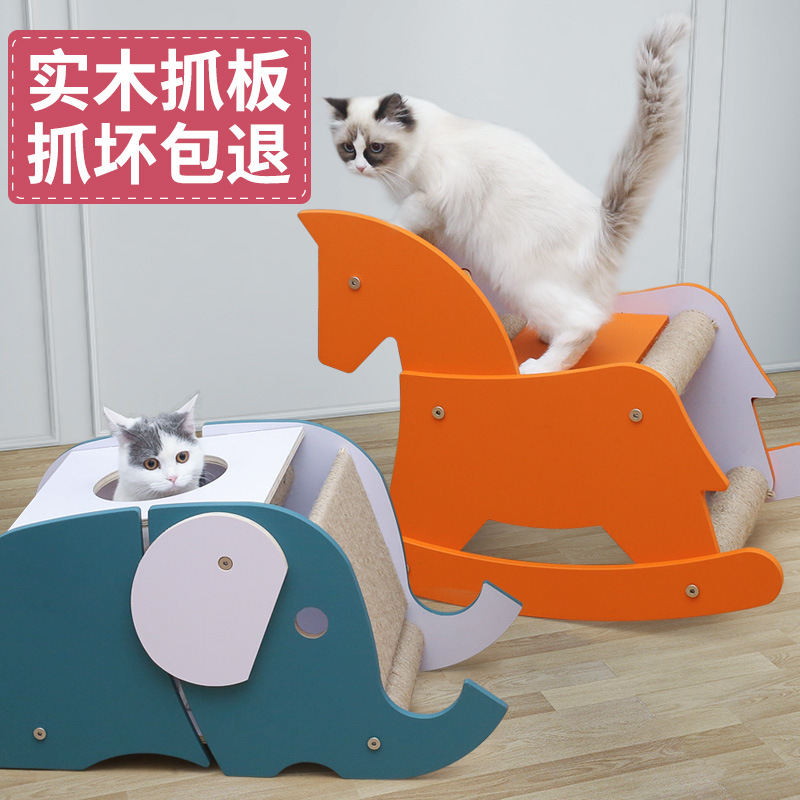 卷尾巴(CURLY TAIL)猫窝猫抓板磨爪器猫爪板宠物猫沙发猫咪玩具磨抓板玩具猫咪用品 DM-2002(木马款)570*348*497mm