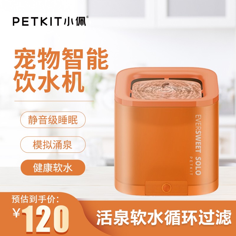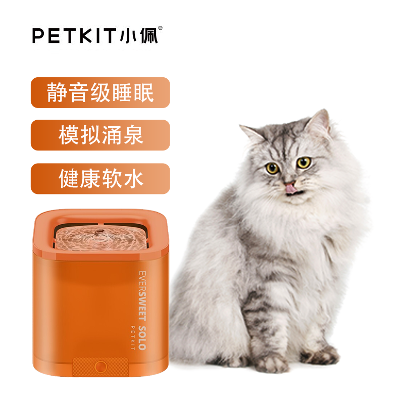 小佩宠物饮水机 SOLO款三代二代无感应电智能自动猫咪狗饮水机猫过滤喝饮水器用品 猫狗碗 宠物碗 橙色款