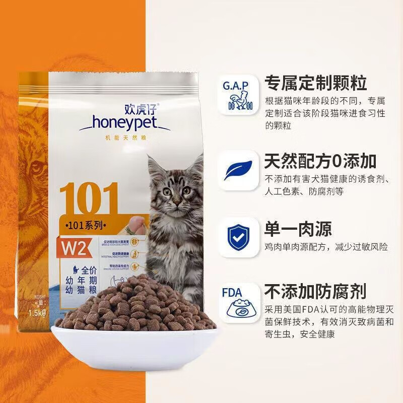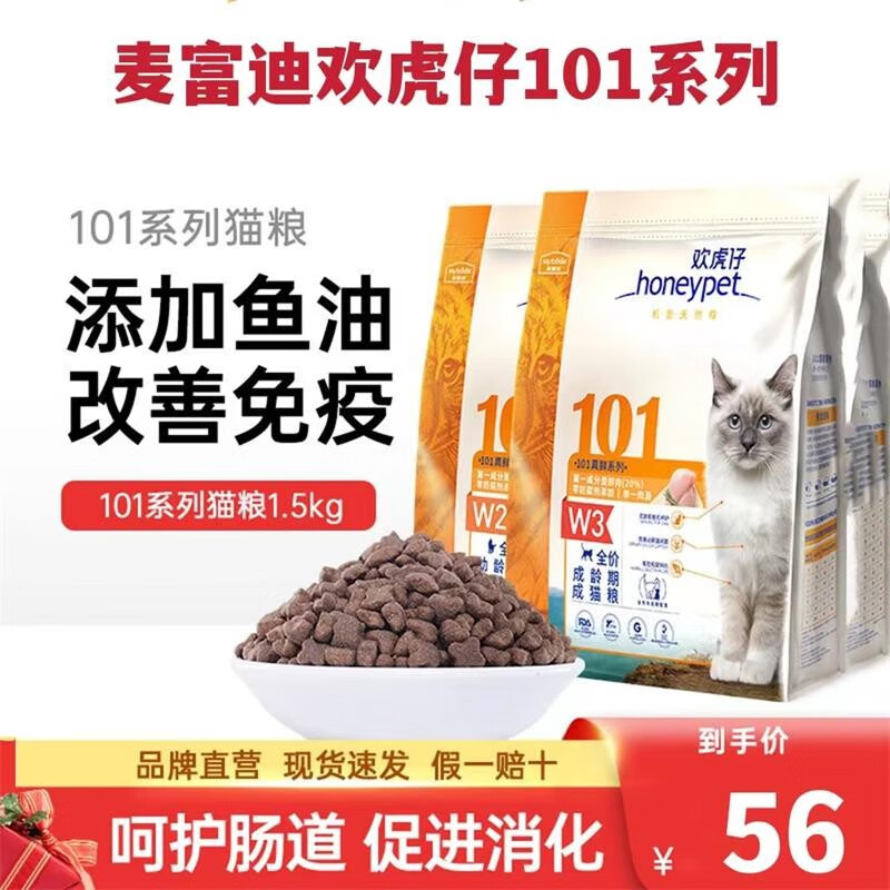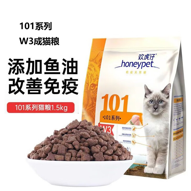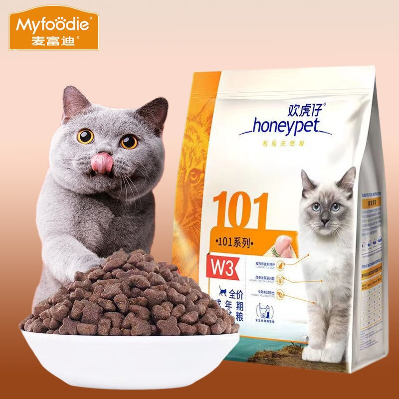 麦富迪(Myfoodie)麦富迪欢虎仔猫粮101成幼猫通用英短美短增肥发腮天然营养猫粮 W3成猫粮 1.5kg*1袋3斤