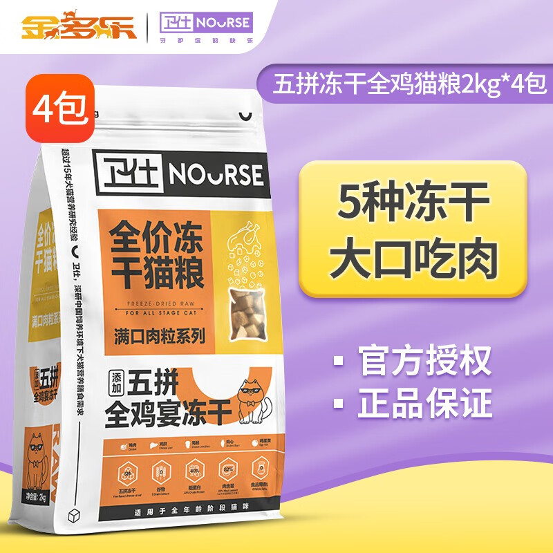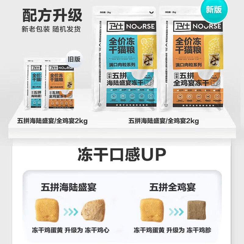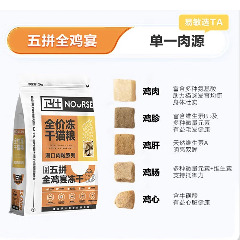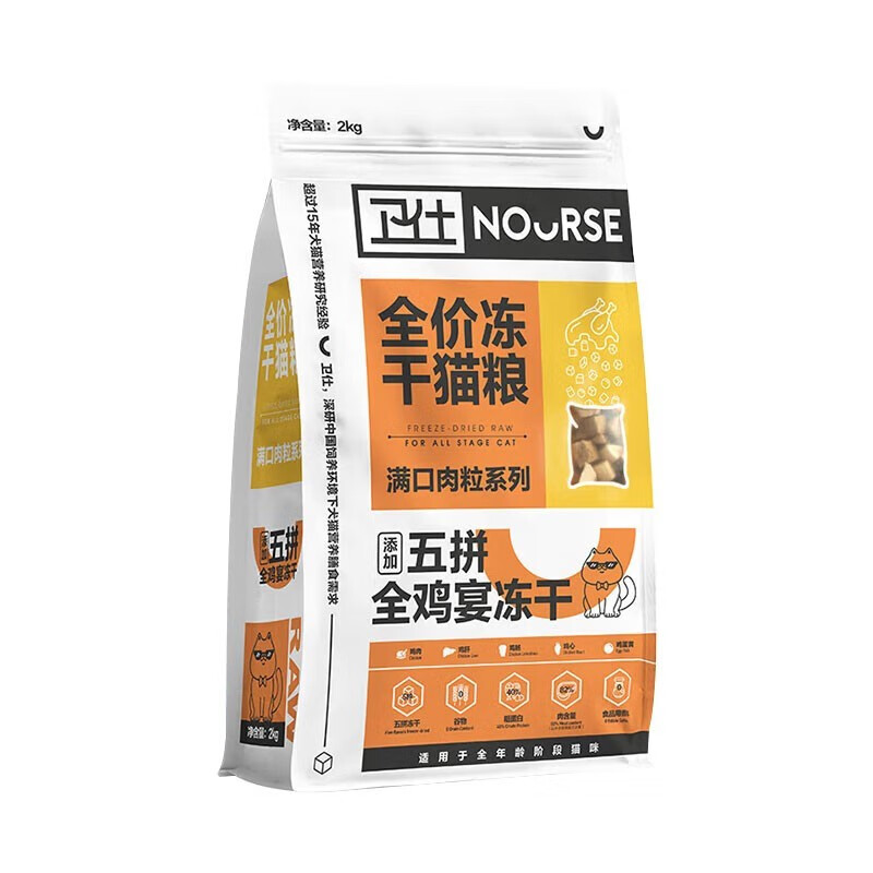 卫仕(NOURSE)全价全阶段猫粮成猫幼猫粮膳食平衡系列全期冻干五拼猫主粮 【五拼冻干】全鸡猫粮2kg*4