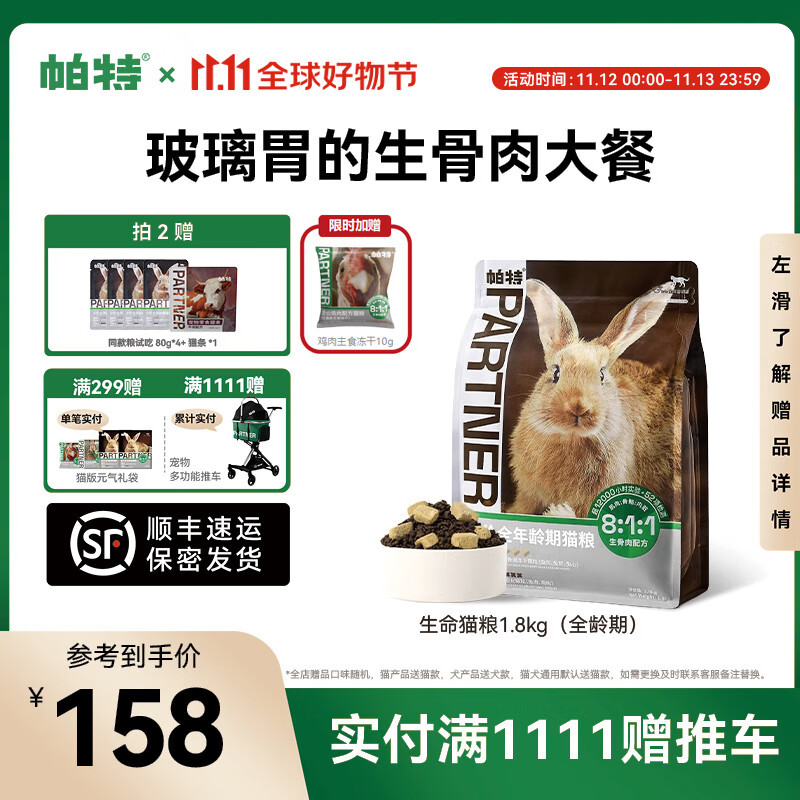 帕特【生命系列】生骨肉冻干低敏兔肉全期全价猫粮营养无谷猫粮1.8kg 兔肉味 1.8kg 全年龄段