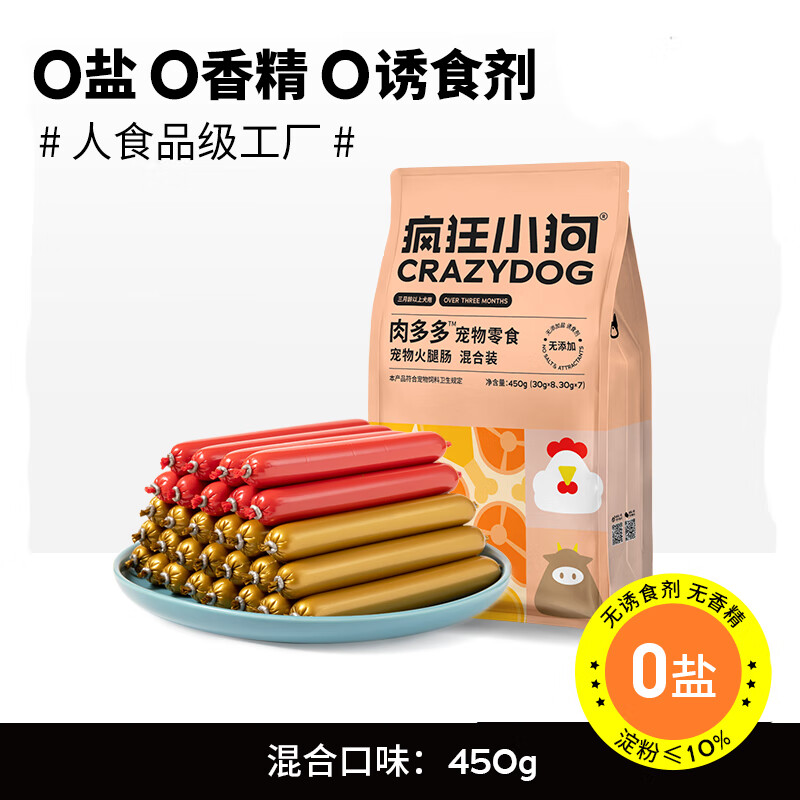 疯狂小狗狗零食火腿肠泰迪金毛幼犬成犬宠物犬猫零食香肠磨牙洁齿训练宠物 【0盐0诱0香精】混合味450g