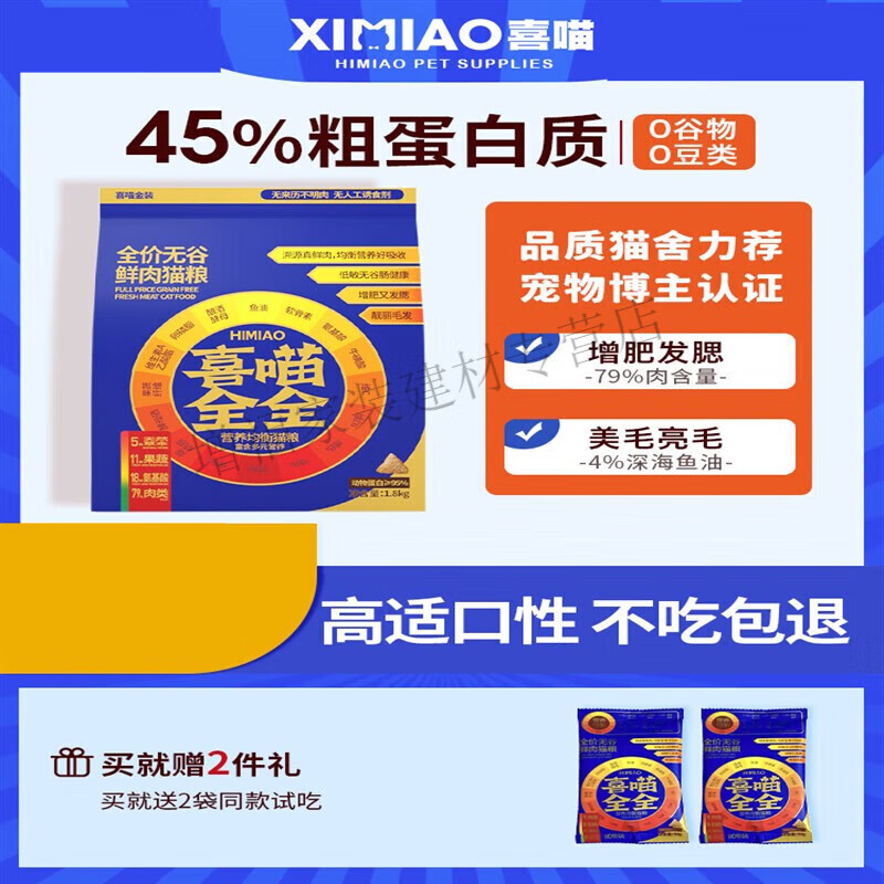 喜喵猫粮鲜肉猫粮3.6斤全阶段成猫幼猫45%高蛋白营养无谷全价猫粮 【鲜肉猫粮】3.6斤/袋 1.8kg单包