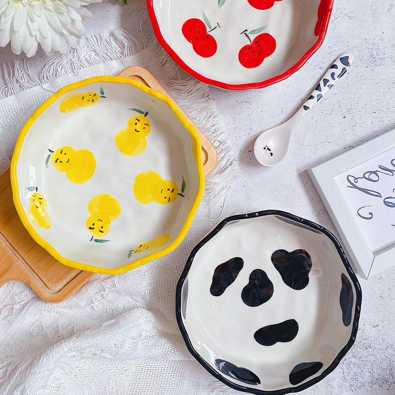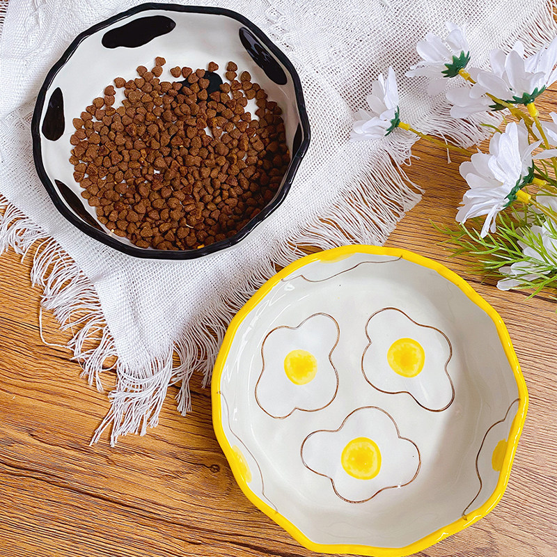 宠物碗零食罐头小食盆猫咪狗狗陶瓷餐具浅口ins风手绘宠物矮脚用