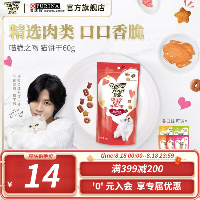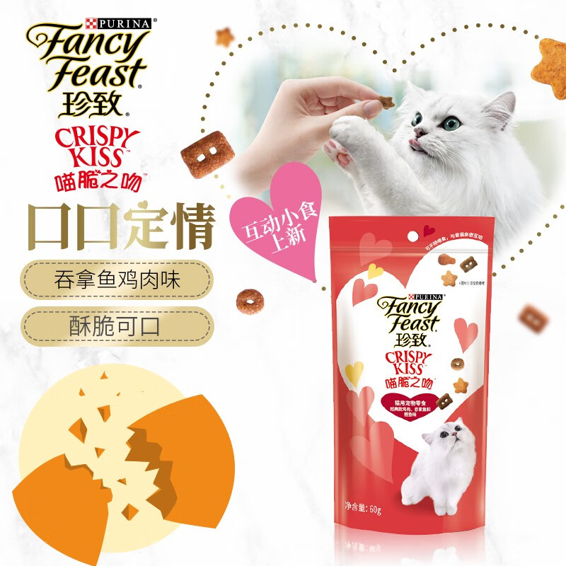珍致(FancyFeast)猫零食 猫饼干喵脆之吻唇齿留香 吞拿鱼鸡肉味60g