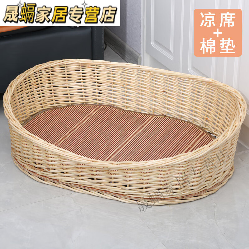 帕沐阁狗窝夏季凉窝柳藤编狗窝猫窝可拆洗大中小型犬金毛泰迪窝四季通 原色 垫子 凉席 四号60*43适合12斤内宠物