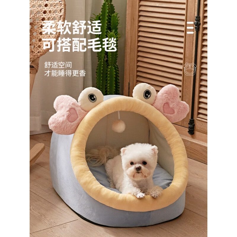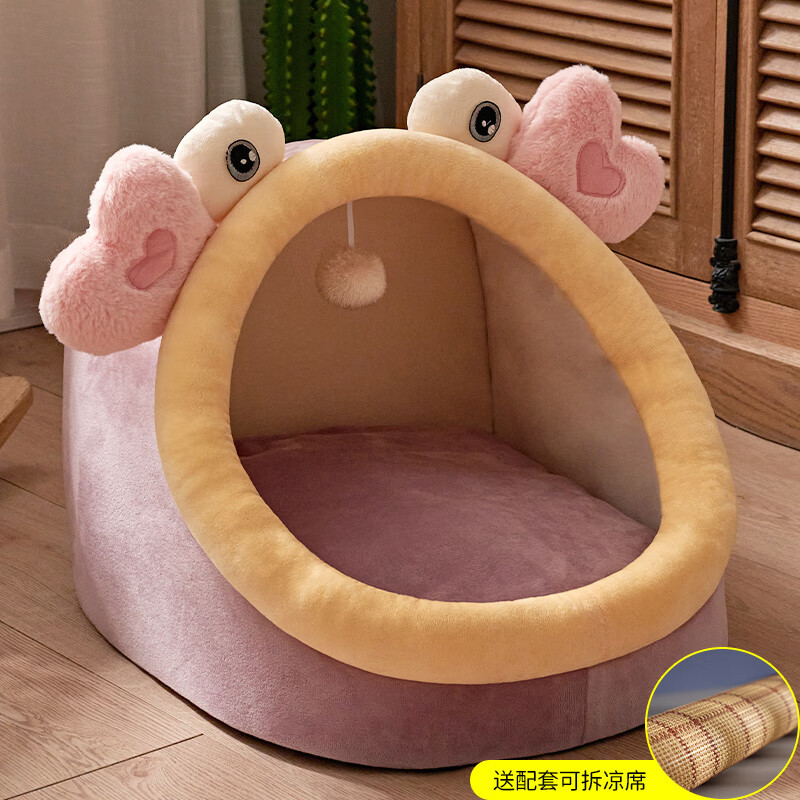 CLCEY狗窝猫窝四季通用可拆洗网红泰迪狗床沙发小型犬夏天狗屋宠物用品 【粉色螃蟹】配凉席 小号【4斤内宠物】尺码偏小,建