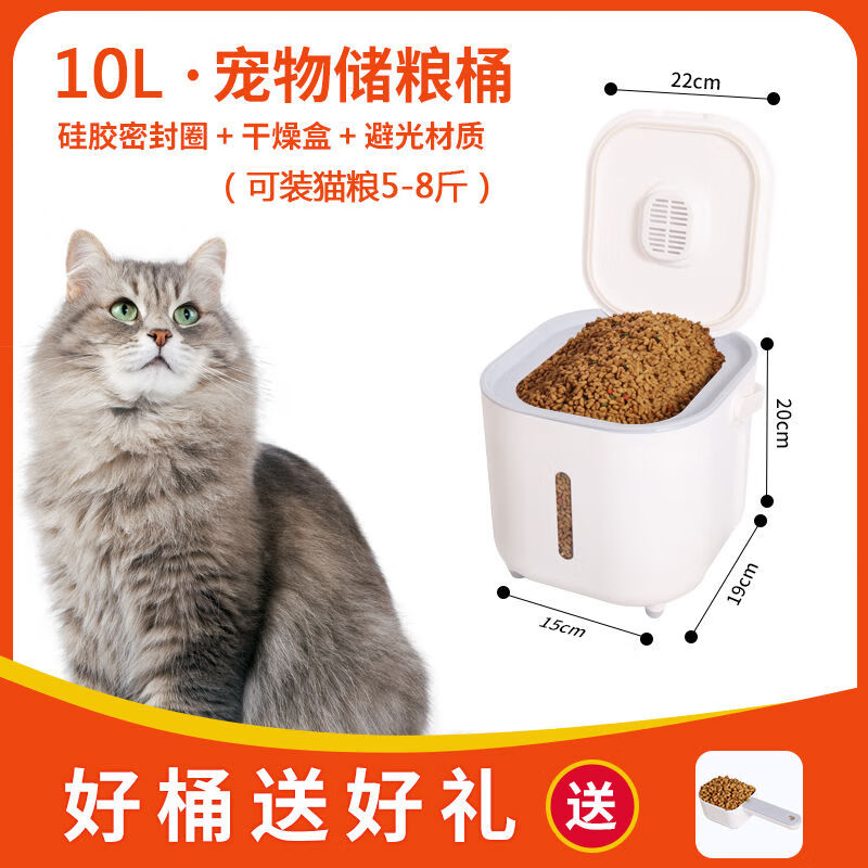 OIMG猫粮桶宠物储粮桶大容量密封桶防潮猫粮储存桶罐零食收纳狗粮桶 10L装宠物粮5-8斤 送精致勺子 【密封储粮 防潮防虫 余量可见】