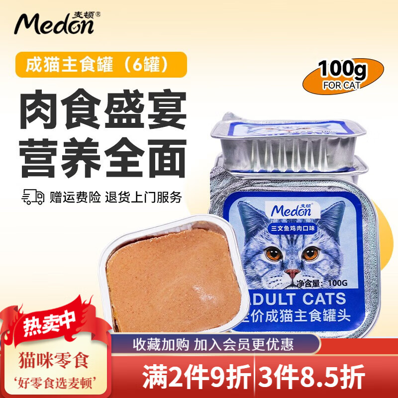 麦顿 猫咪主食罐头猫咪健康营养蓝猫英短猫零食湿粮 全价成猫主食罐100g*6罐