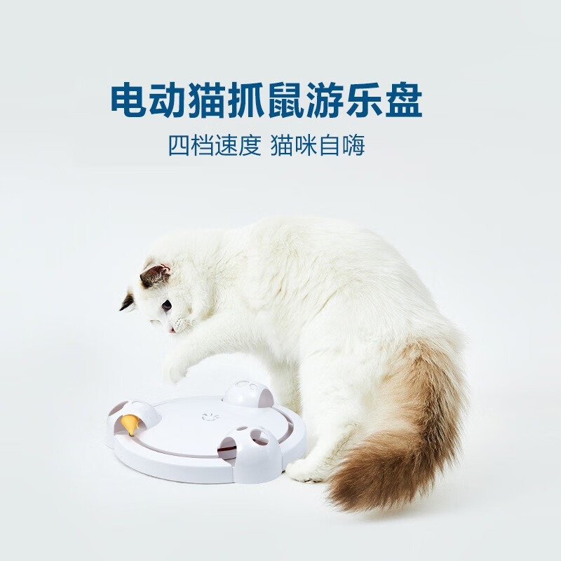 电动猫玩具代发猫转盘解放双手互动宠物玩具捕猎老鼠 白色 32CMX7CM