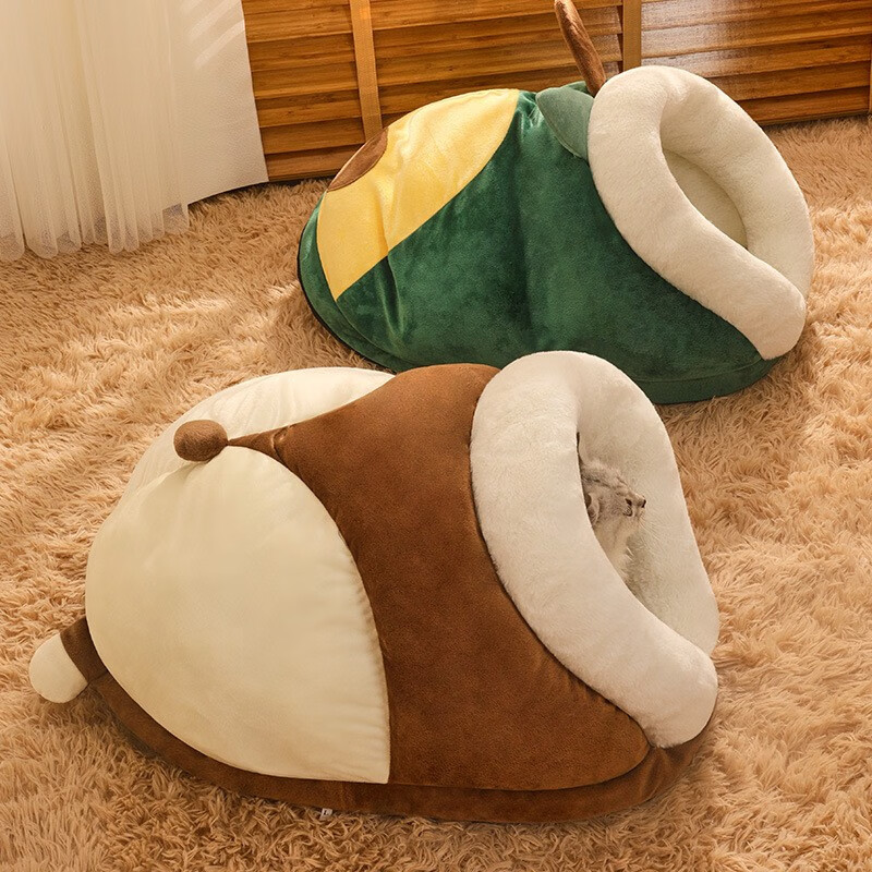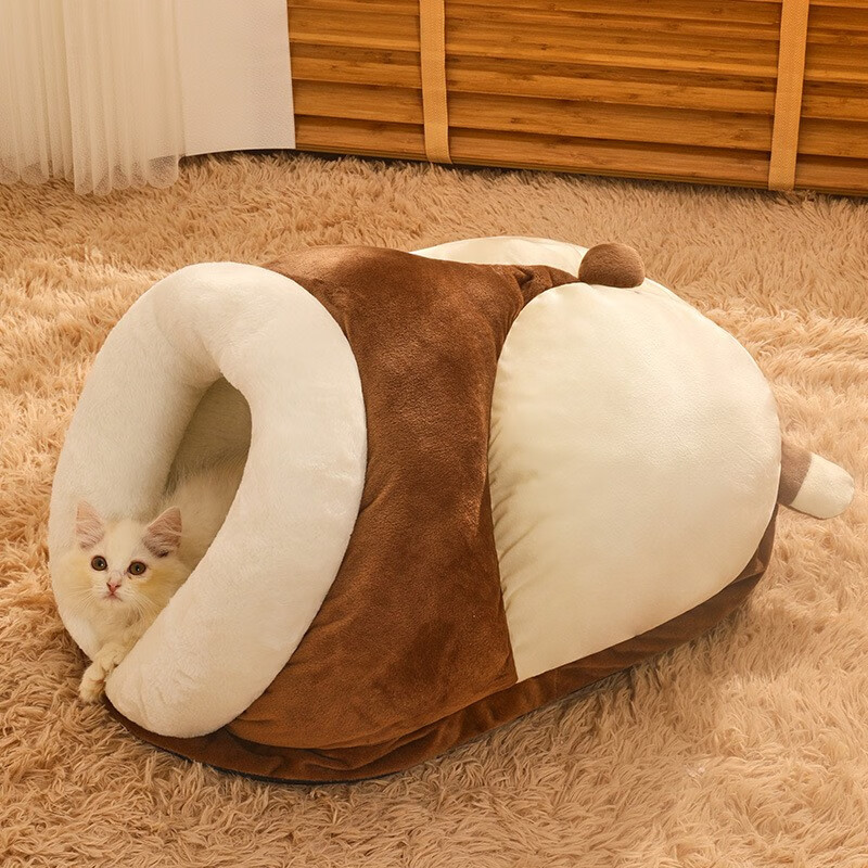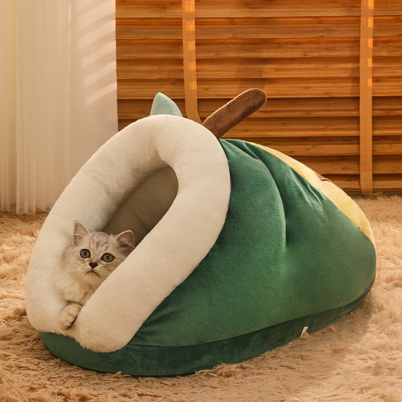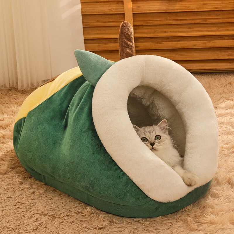 猫窝睡袋 四季通用冬天保暖半封闭式可爱幼猫狗窝床屋宠物猫咪用品可拆洗冬季猫窝狗屋加厚宠物窝猫咪房子 牛油果果【比别人家空间更大 更厚实】 大号-15斤内宠物
