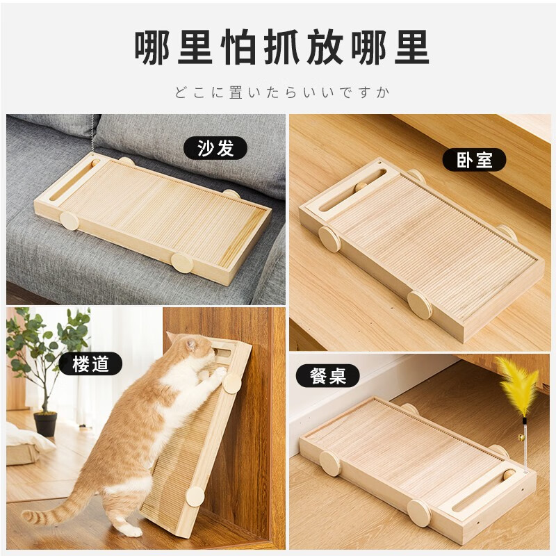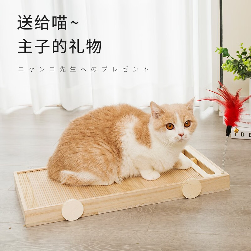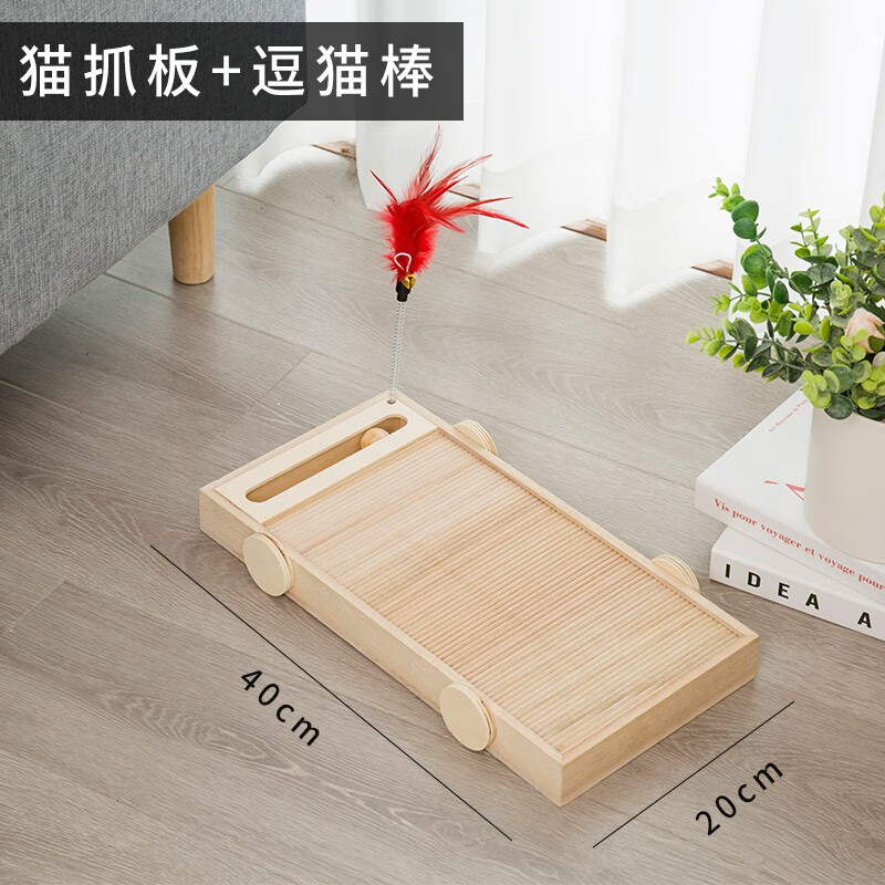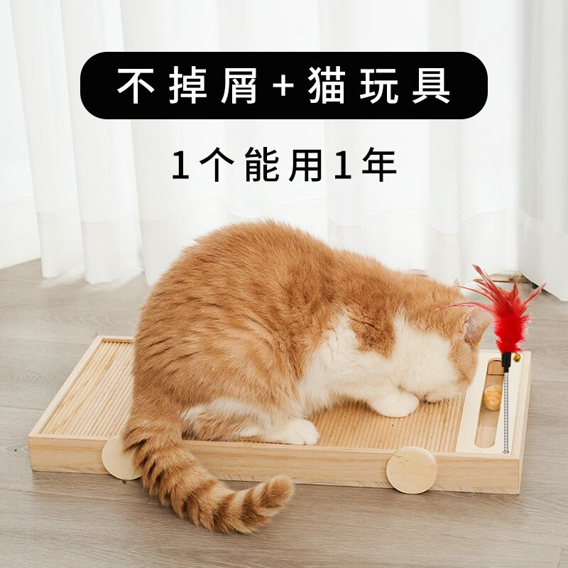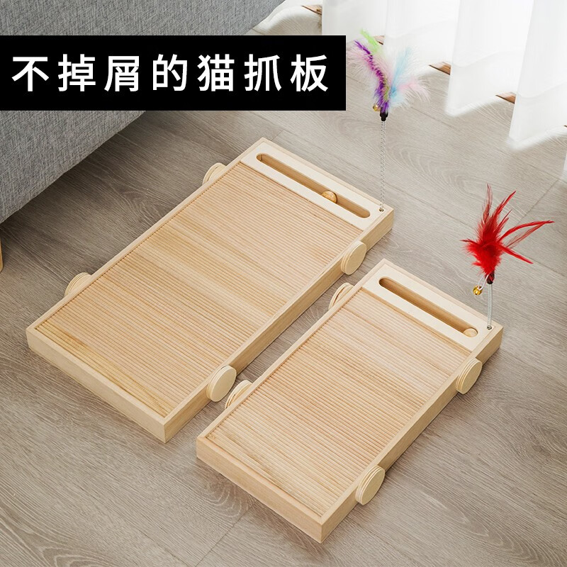 猫抓板不掉屑实木耐磨多功能立式防猫抓沙发保护磨爪猫爪板车玩具立体猫咪用品磨爪子用磨爪猫捉板大号 小号40*20cm6斤以下猫咪