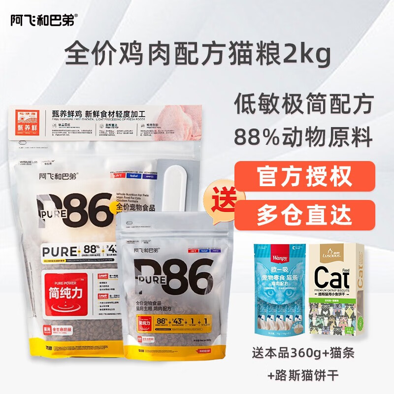 阿飞和巴弟P86无谷猫粮 冻干生骨肉成猫全阶段猫粮 p86 2kg 送360g