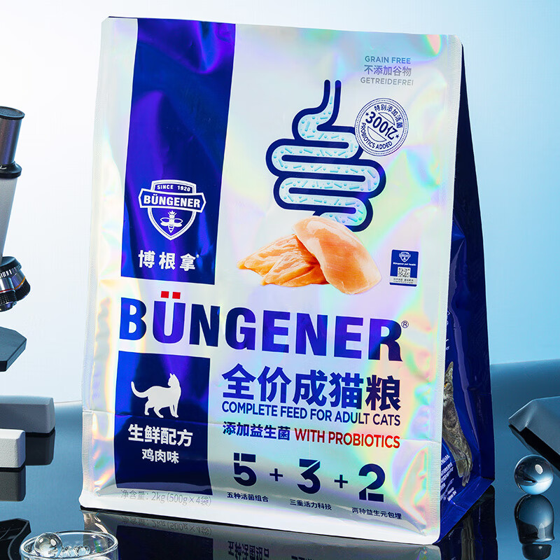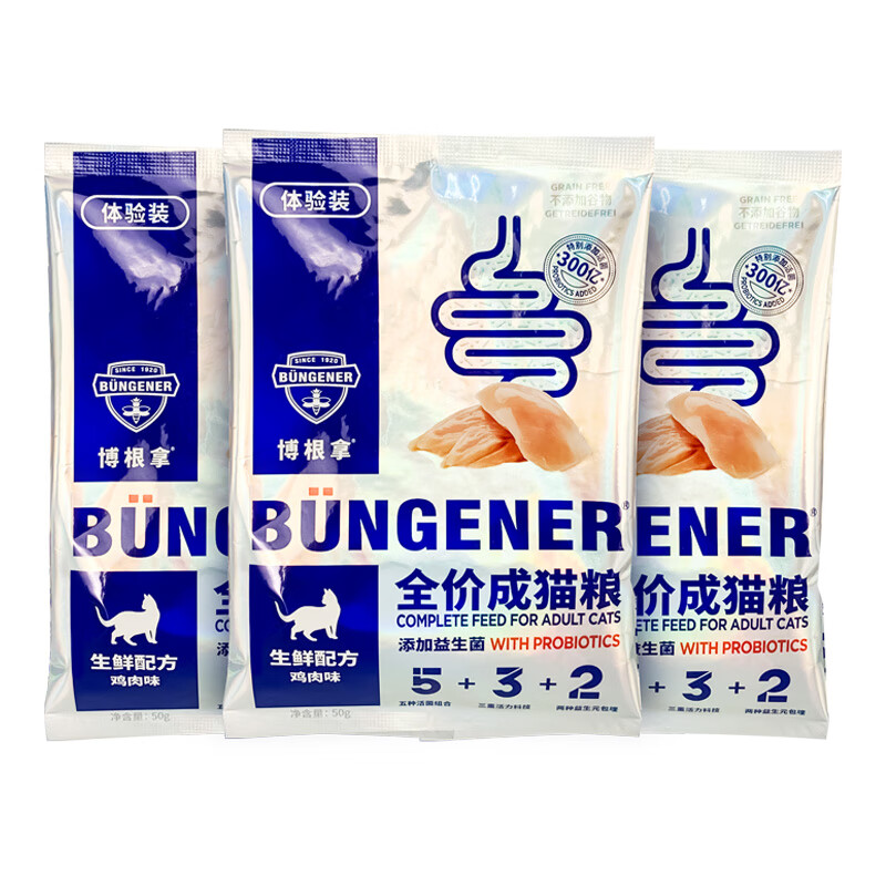博根拿Büngener 德国品牌 全价成猫粮无谷鲜肉粮50g 生鲜配方鸡肉味添加300亿益生菌 呵护肠道健康
