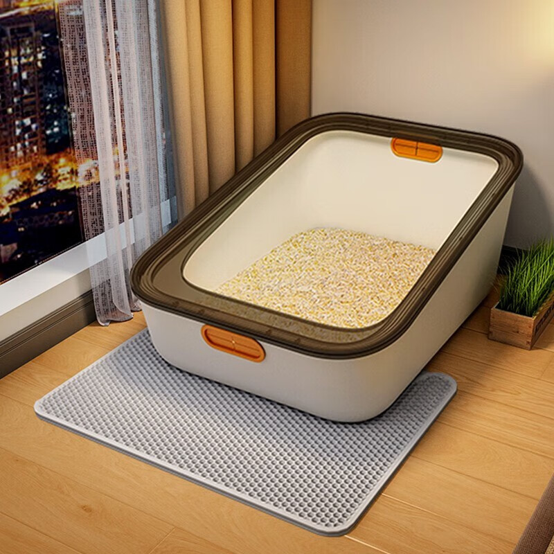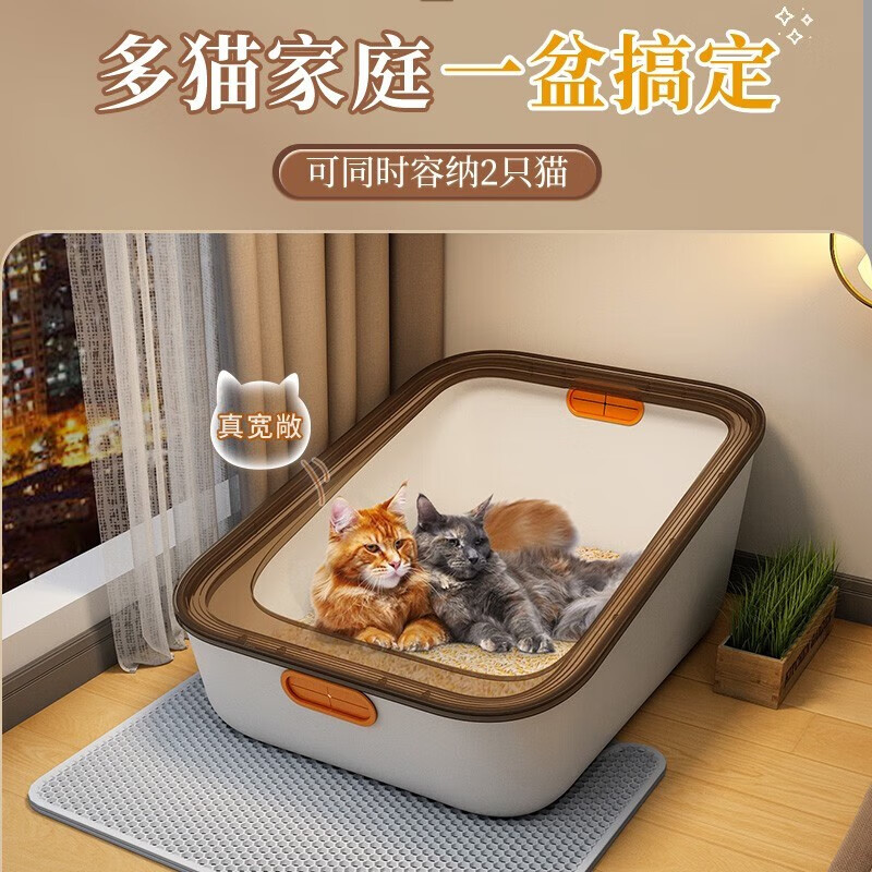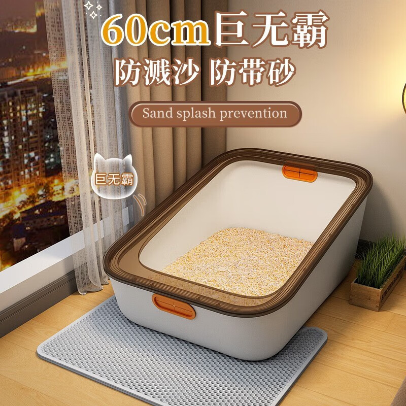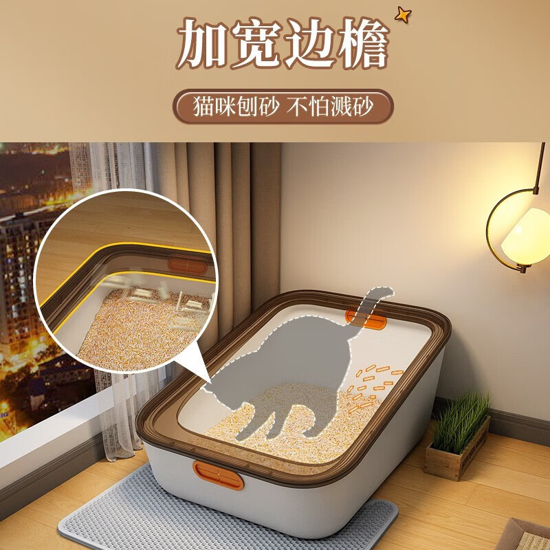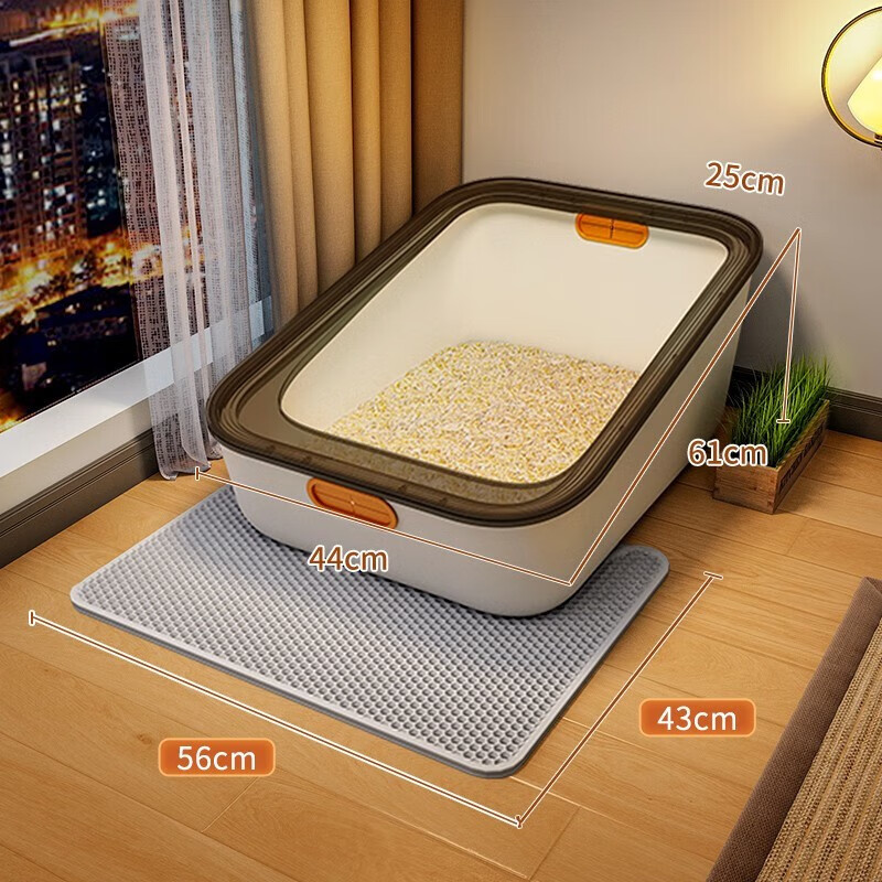 宠趣汇猫砂盆特大号超大号防臭猫厕所除臭猫咪开放式巨大猫沙盆子半封闭猫屎盆 【典雅白】带猫砂垫【防带砂·免打扫】