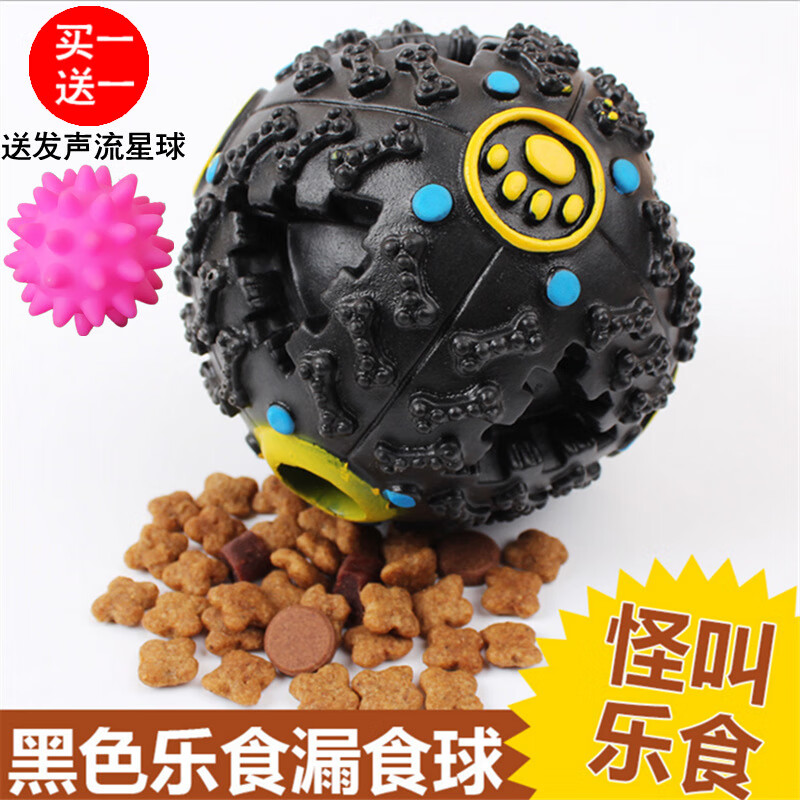 漏食球狗狗益智玩具宠物用品咬咬胶狗零食漏食器怪叫球消磨时间球 黑色小号-直径约7cm