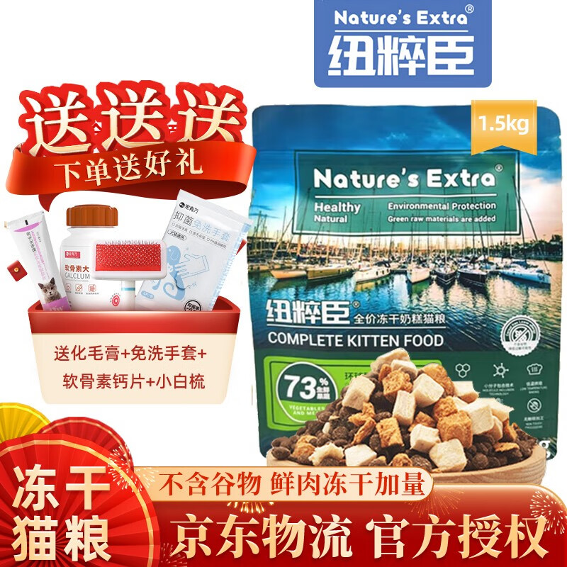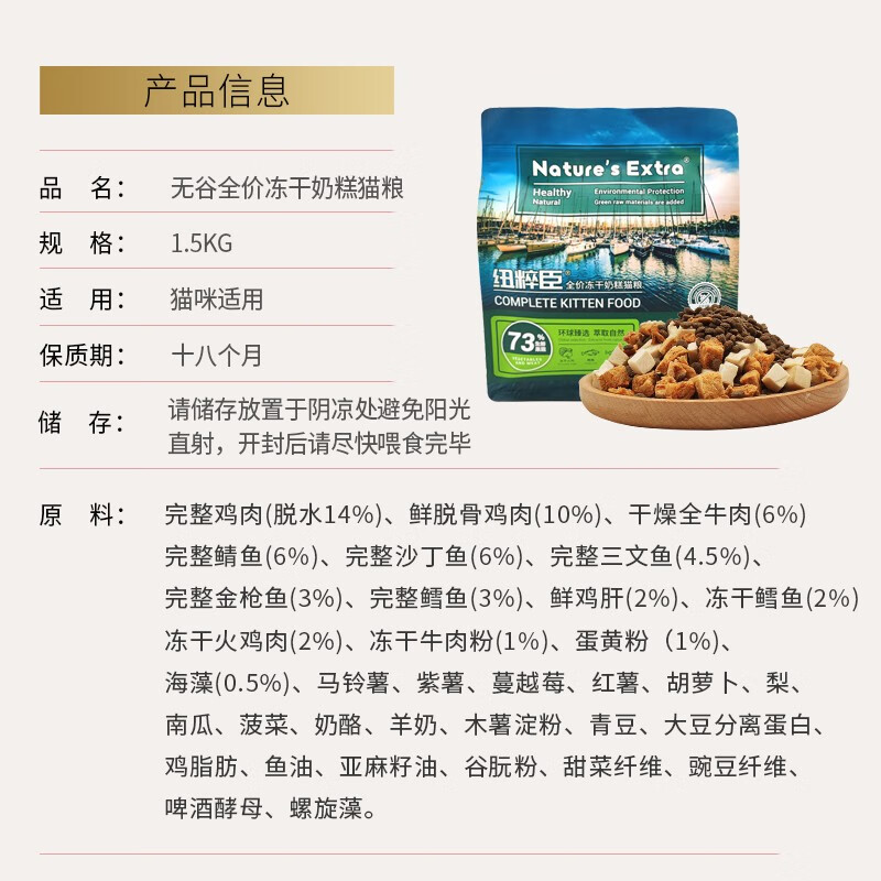 纽粹臣冻干猫粮全价全猫期无谷鸡肉鱼肉冻干成猫粮蓝猫英短发腮营养 全价全期冻干奶糕猫粮1.5kg
