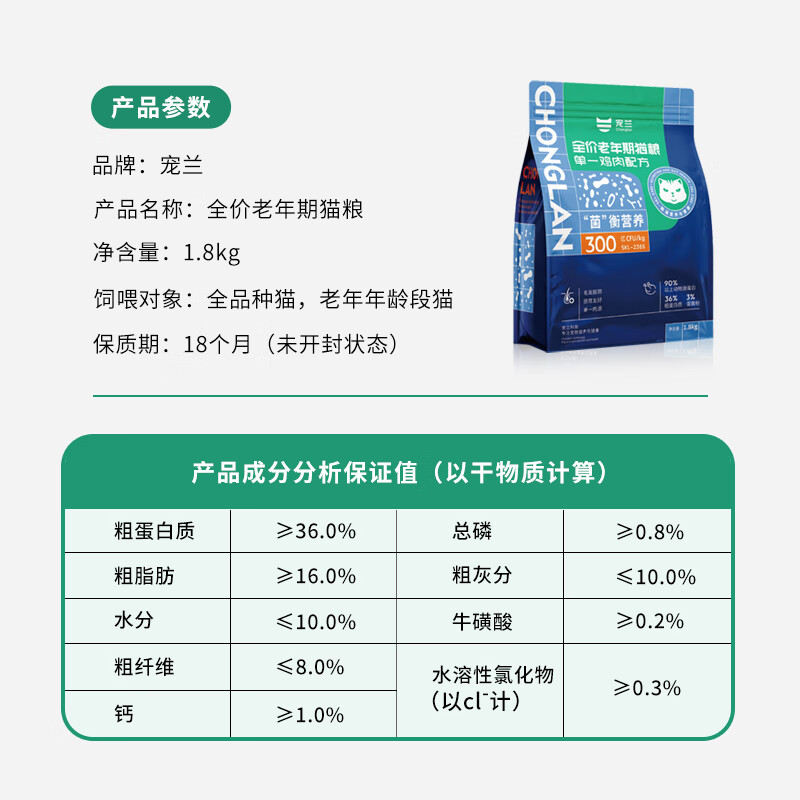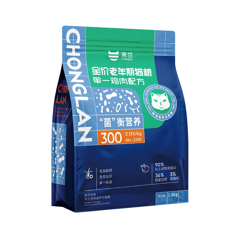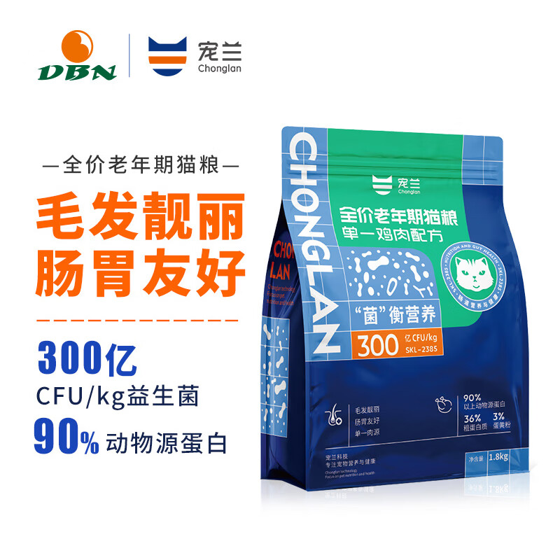 宠兰全价成猫粮益生菌宠物成幼猫主粮老年期猫食品无谷低敏鸡肉高蛋白 益生菌全价老猫粮1.8kg
