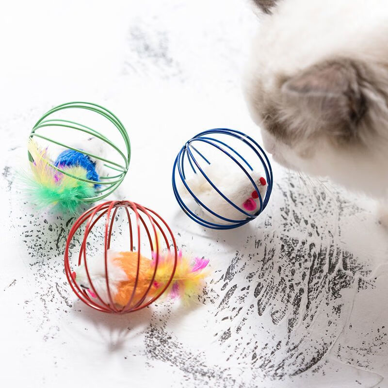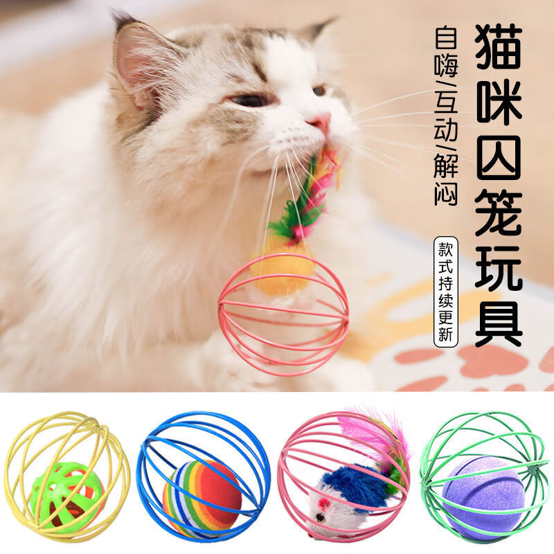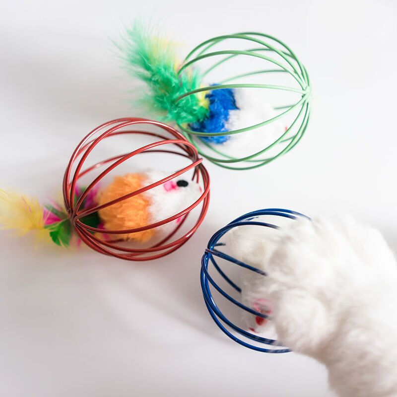 猫玩具笼中鼠囚笼羽毛尾巴老鼠耐抓耐咬大号铃铛球形猫咪自嗨玩具 养猫【消除无聊 结实耐玩】 活动:买一餸一【共2个】马上结束