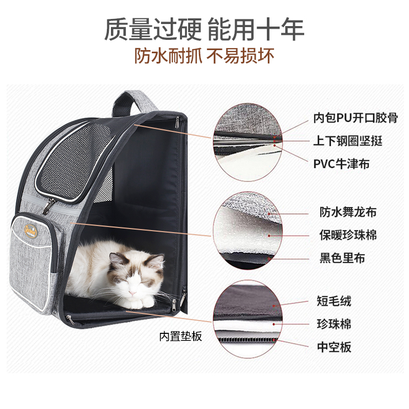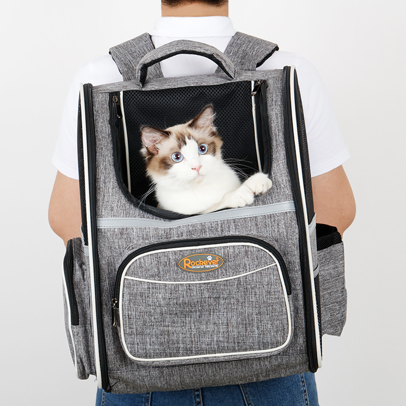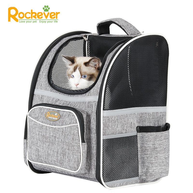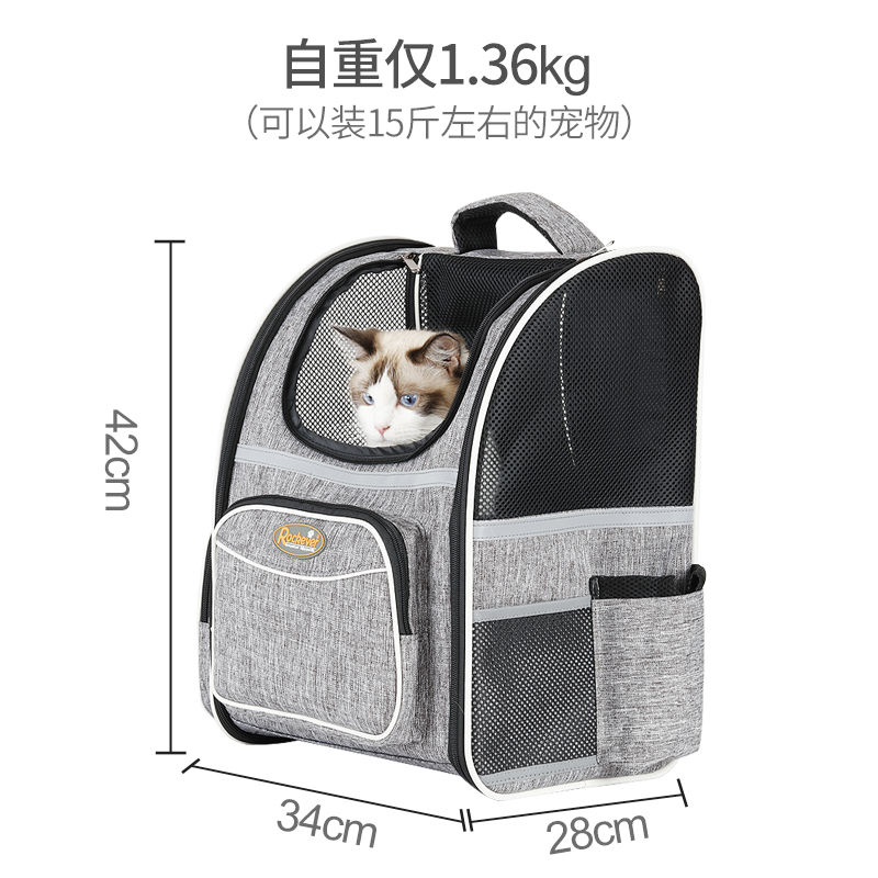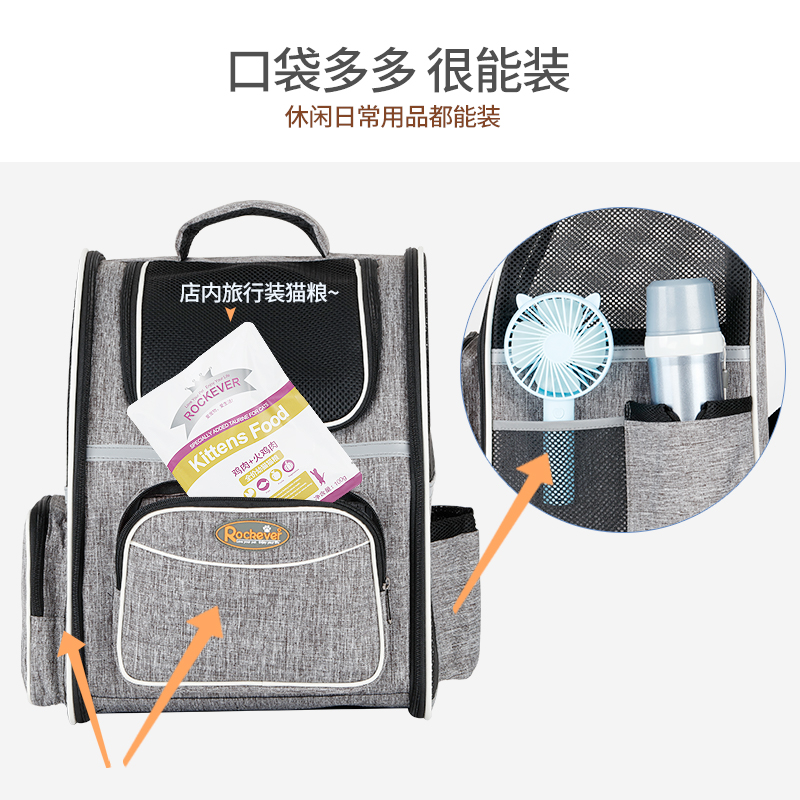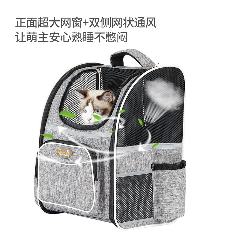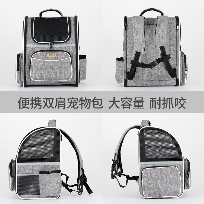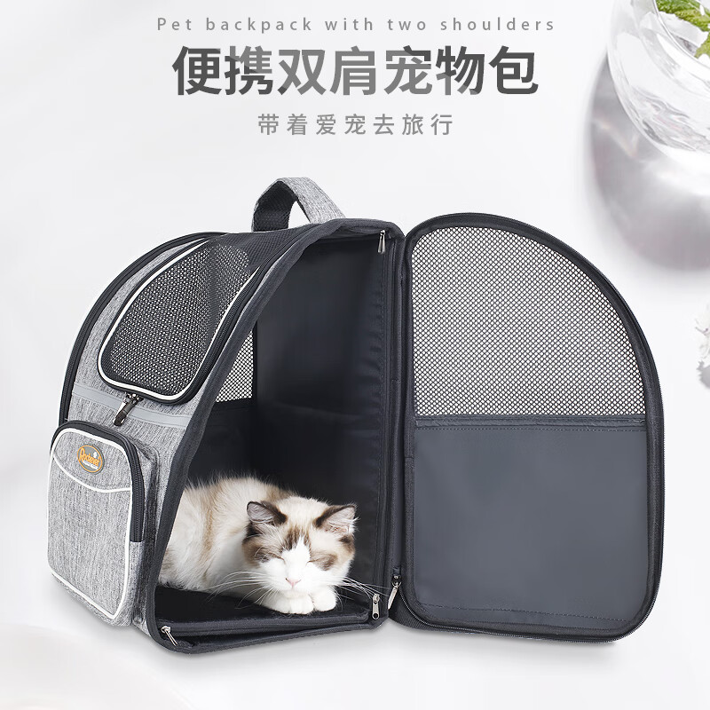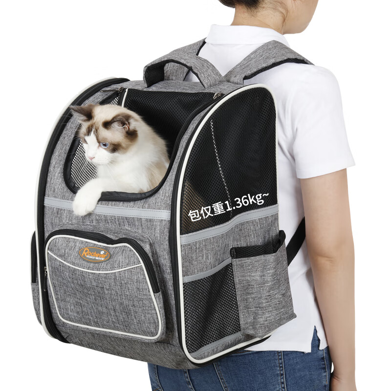 Rockever宠物外出双肩猫包狗包可拆洗狗背包便携乘车大号透气防水大空间旅行车载猫袋 雪花灰【前盖网状】新升级三侧袋收纳更丰富 M(L32*W26*H42)